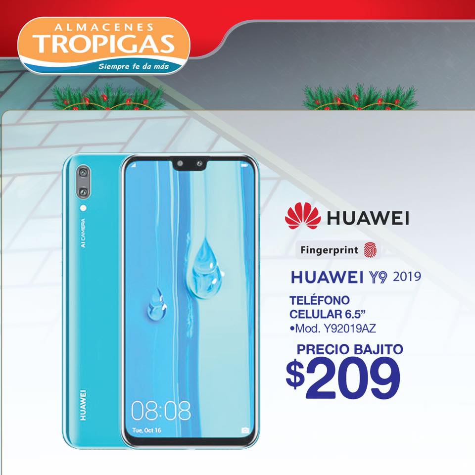 llena de felicidad, aprovecha el increíble descuento del HUAWEI Y9 2019. En #AlmacenesTropigas contamos siempre con cuotas chiquitas y precios bajitos.*Restricciones aplican, mayor información en sucursales.*Promoción válida hasta del 16 al 24 de noviembre de 2019.
