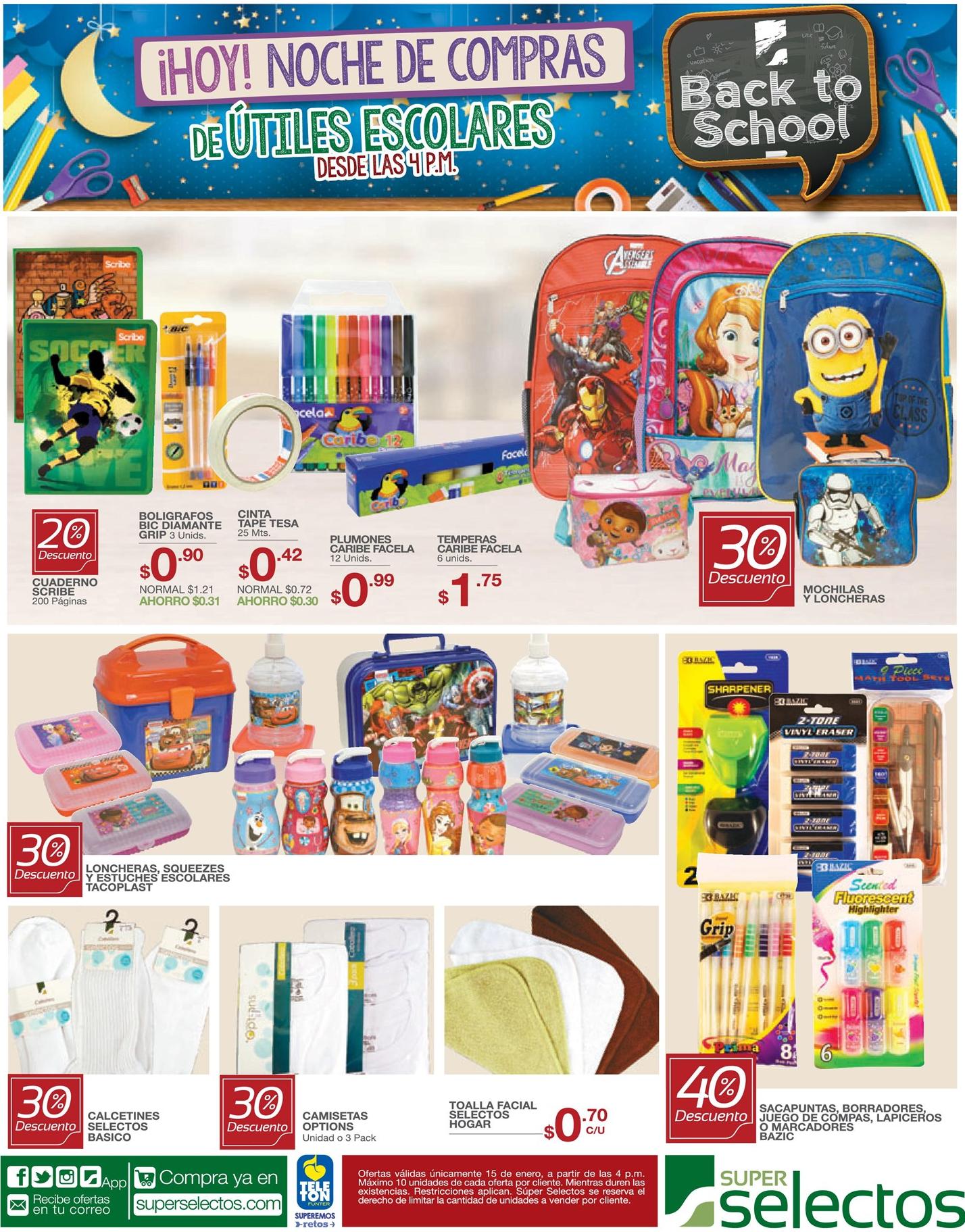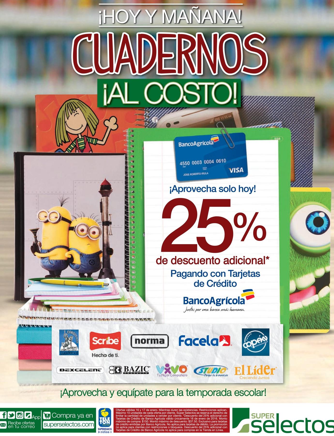SUPER SELECTOS promocion de Fin de semana de cuadernos escolares al costo
