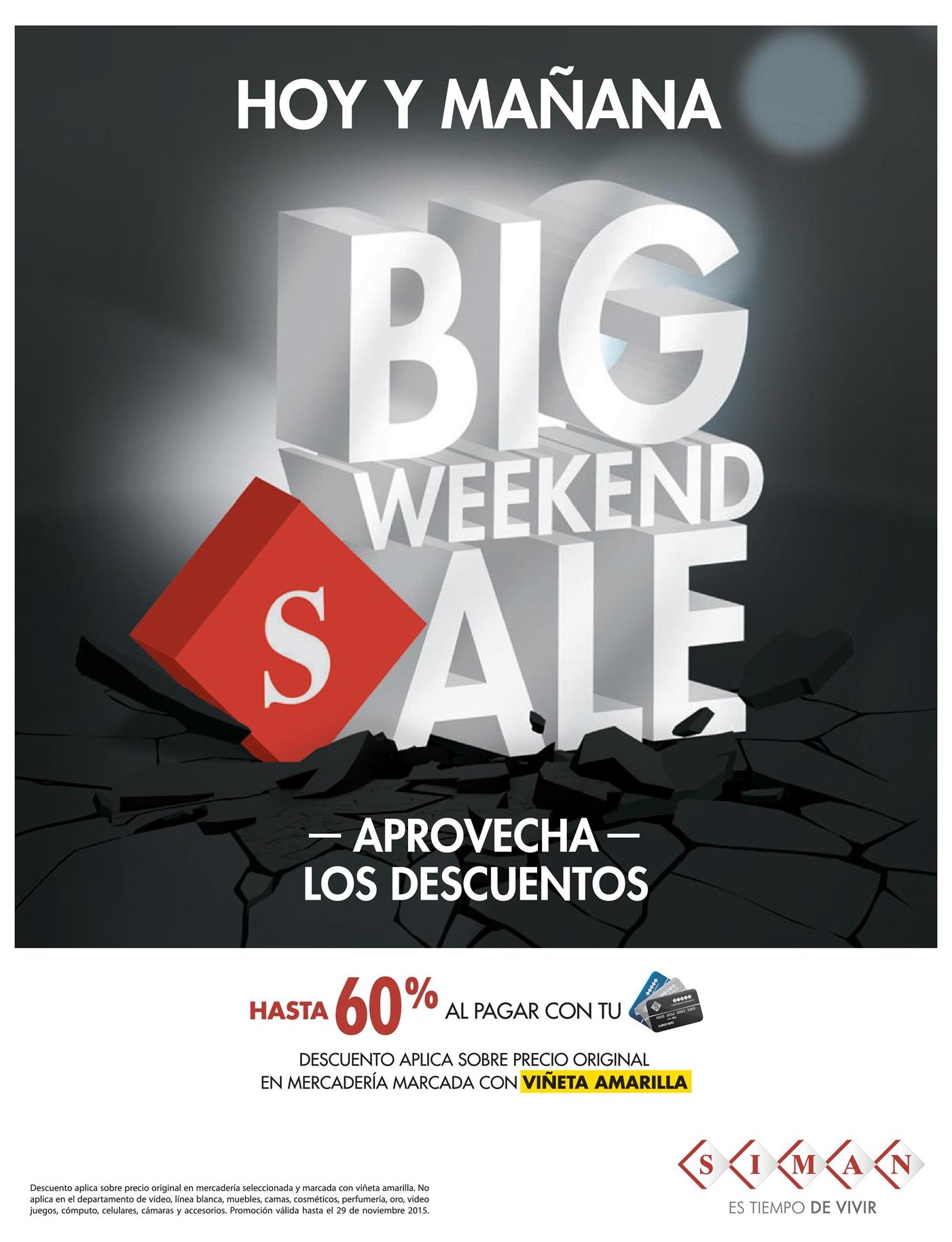 Ayer te quedaste sin comprar tu promocion traquilos este Fin de Semana con mas ofertas BLACK WEEKEND 2015. Sabes por que se pelaron los chicos de DIGISALE weekend. SIMAN te invita a su BIG weekend sale – sabado y domingo. Si vas de prisa come saludable con superselectos. Super ofertas en llantas para tu carro DIPARVEL distribuidor. Super selectos ventas de tecnologia con precios weekend. Tus electrodomesticos necesitan una renovacion BLACK de omnisport. Weekend RadioShack promotions aun puedes obtenerlas