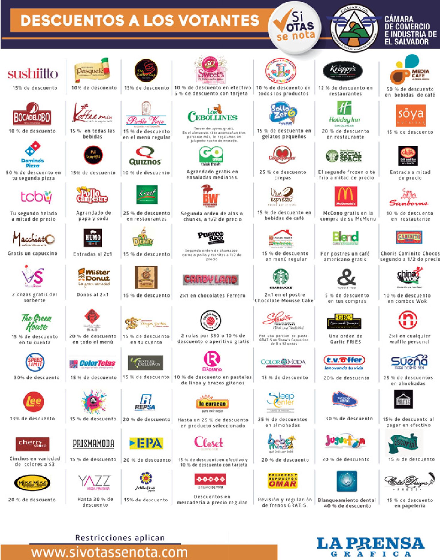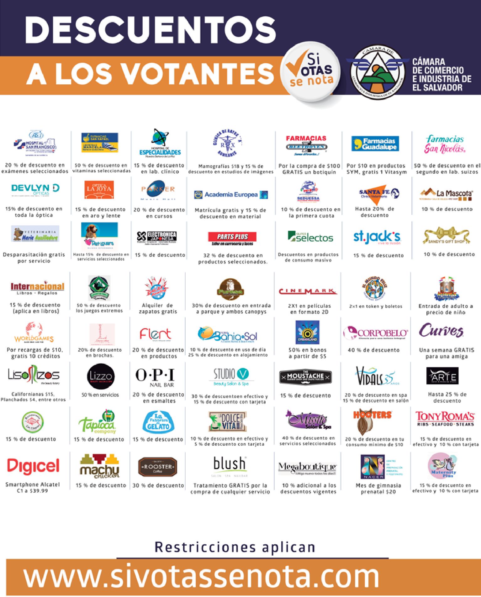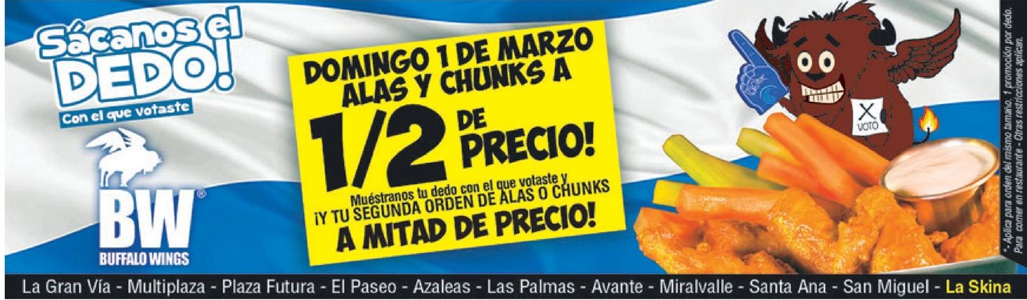 Descuento a los votantes 01 Marzo 2015 Un verano con sabor de promociones omnisport, Mi llantas firestone PROMOCIONES, Este 1 e marzo descuento en puerco rico STREAMING movie DRAGON 2 via claro video sacanos el dedo con el que votastes BUFALLO WINGS Fin de semana PROMOCIONES sears por tu voto y mas ricas leche con chocolate, Despensa familiar en ofertas de supermercado, 12 pack soda coca cola, new ARIEL POWER PODS limpia tu ropa, saludable y deliciosa leche de soya, Cortes especiales de carnes para tus celebraciones, Festival de alimentos saludables en super selectos, Descuentos en productos de belleza y cambio de look, Super precios siempre comunicados SELECTOS movil, En plaza mundo VOTANDO todos ganan – 01mar15 special coverage elecciones 2015 el salvador Hoy es dia TIGO con cuadruple saldo, Hasta 50 OFF por emitir tu voto 2015 Cafe amricano GRATIS por la compra de tu postre, Promociones para los votantes elecciones 2015 Si votas se nota OFERTAS para los votantes 01-mar-15