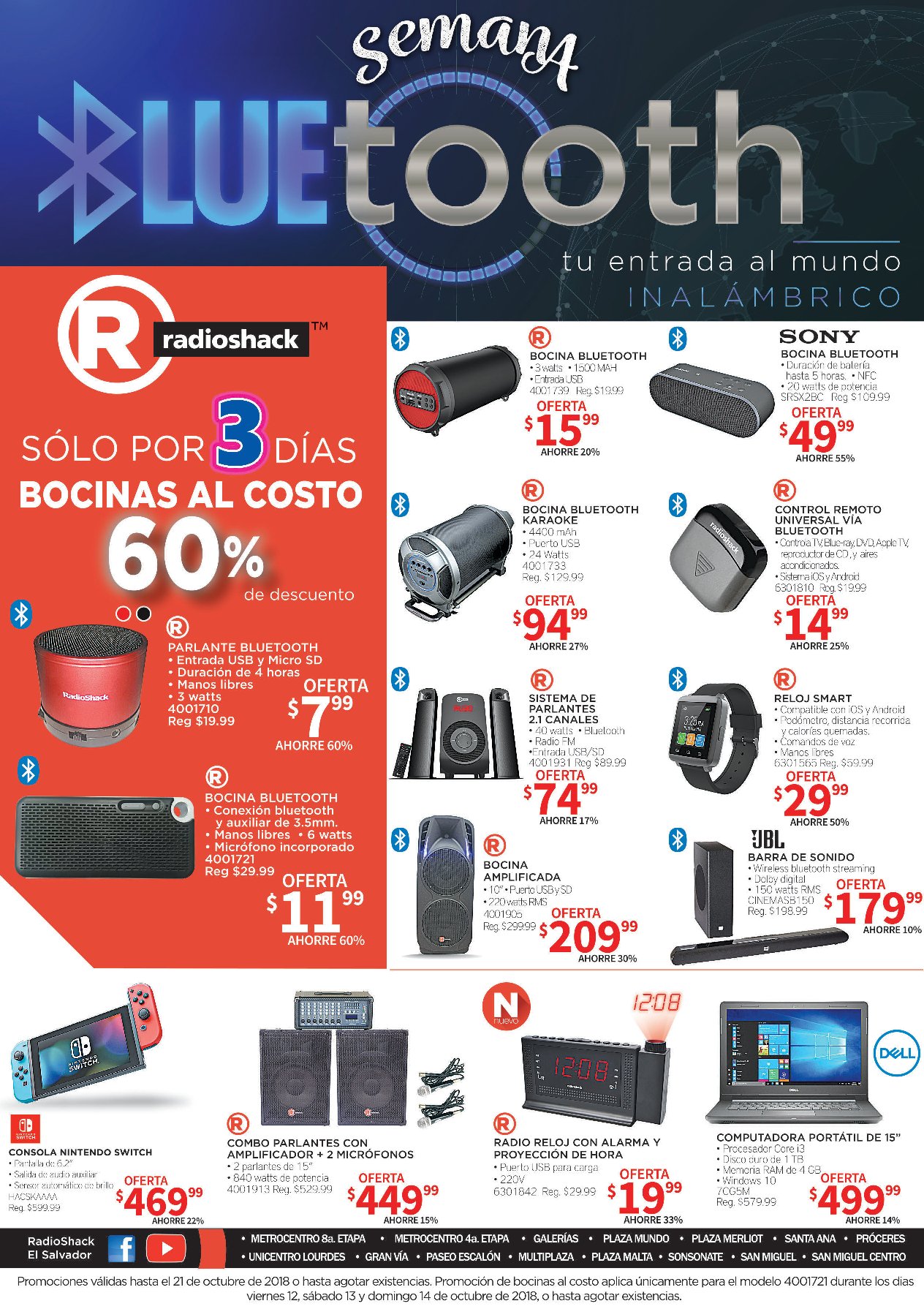 Si eres amantes de los dispositivos Bluetooth, éstas promociones son para ti ???? Visita tu sucursal más cercana, porque en #RadioShack tenemos tu entrada al mundo inalámbrico ???? *Restricciones aplican. Promociones válidas hasta el 21 de octubre 2018.