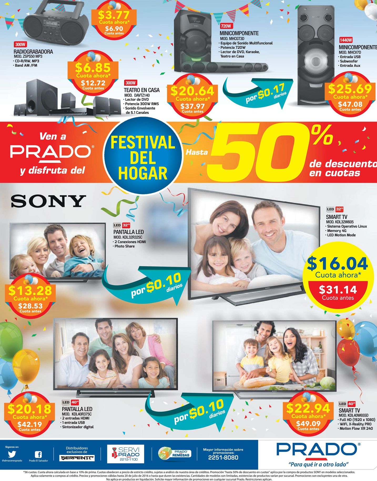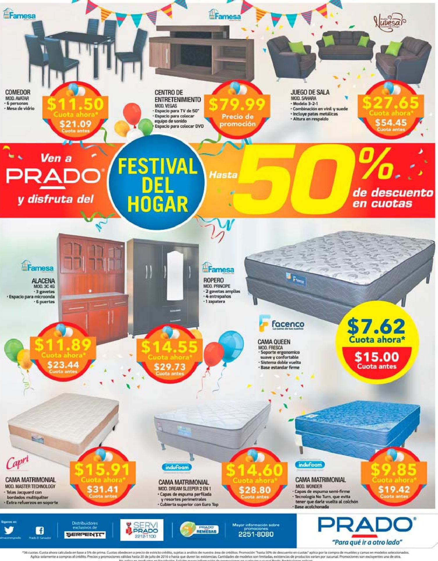 Fin de semana para disfrutar los descuentos de PRADO sv. Descuento en camas y muebles de almacenes prado julio 2016. Nueva sucursal Almacenes PRADO plaza mundo soyapango. Hasta 45 off gracias a PRADO en electrodomesticos. PRADO smart tv con accesos a youtube y netflix.