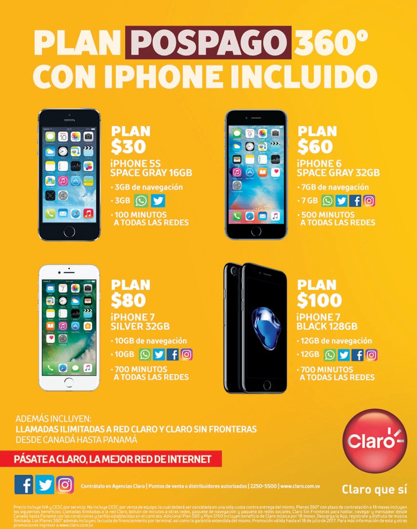 Planes pospago CLARO con iphone smart phones.