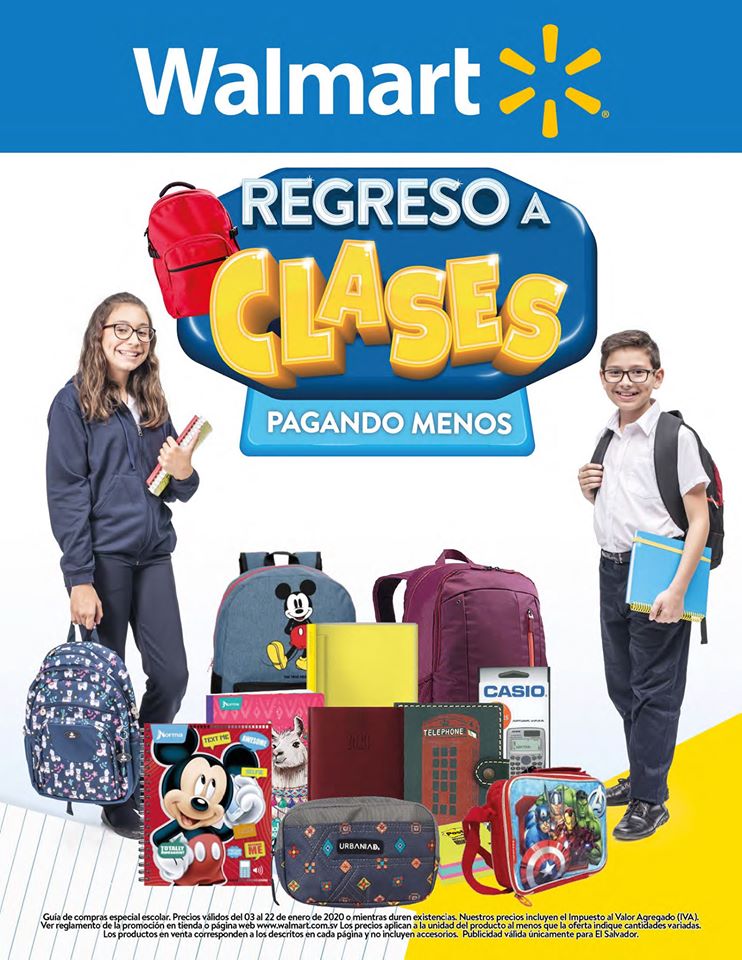 Almacenes y Supermercados Walmart El Salvador presenta su catalogo back to school 2020 En este #RegresoAClases podrás llevar todo lo que necesitas para que tu Año Escolar sea un éxito. 🎒🖍*Válido al 22 de enero de 2020.
