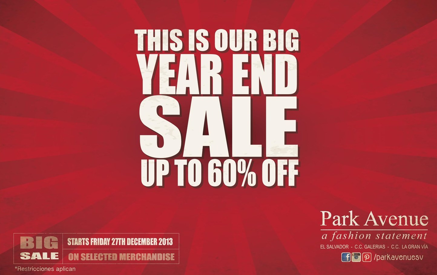 Gran venta de Fin de año descuentos, 27-DIC-2013