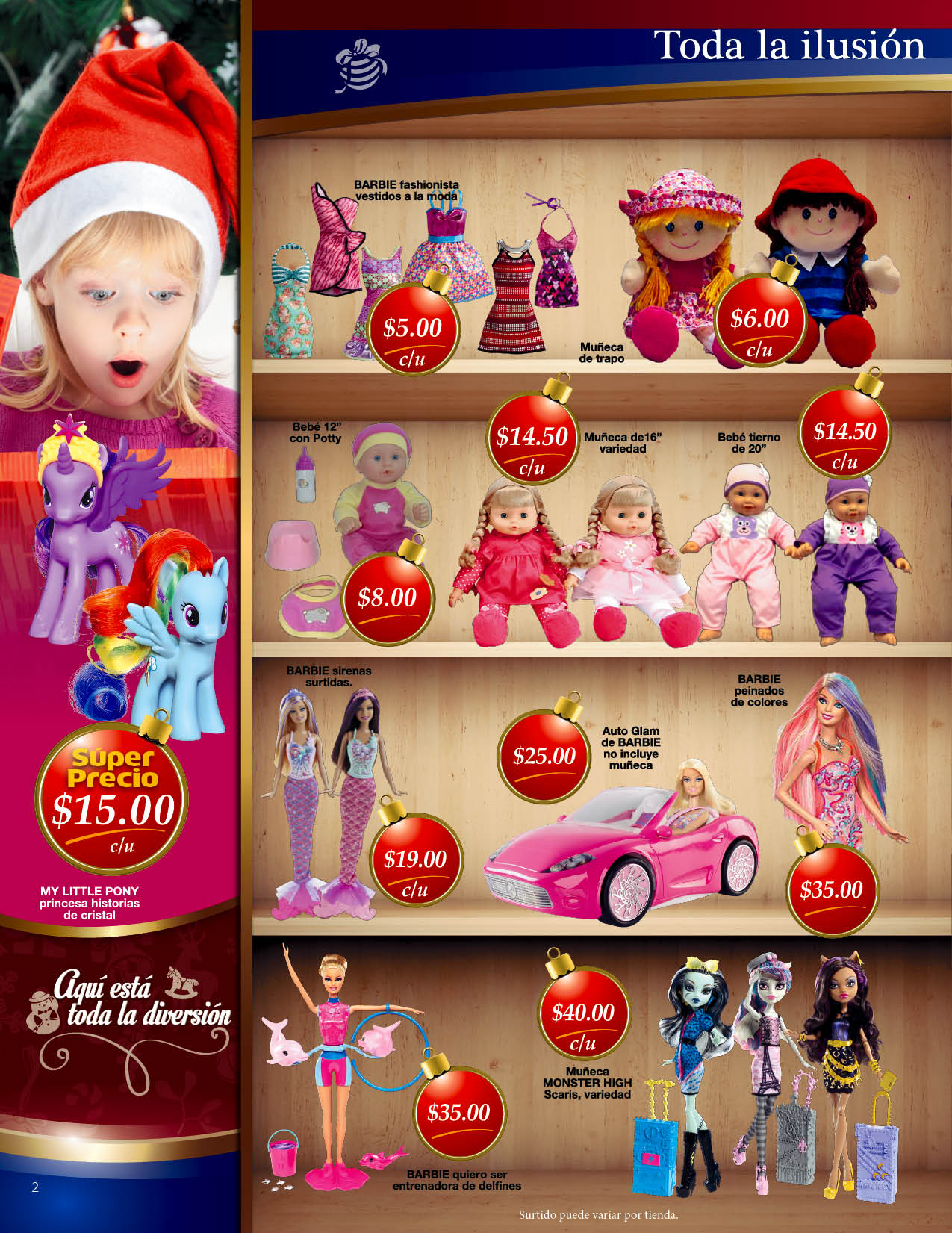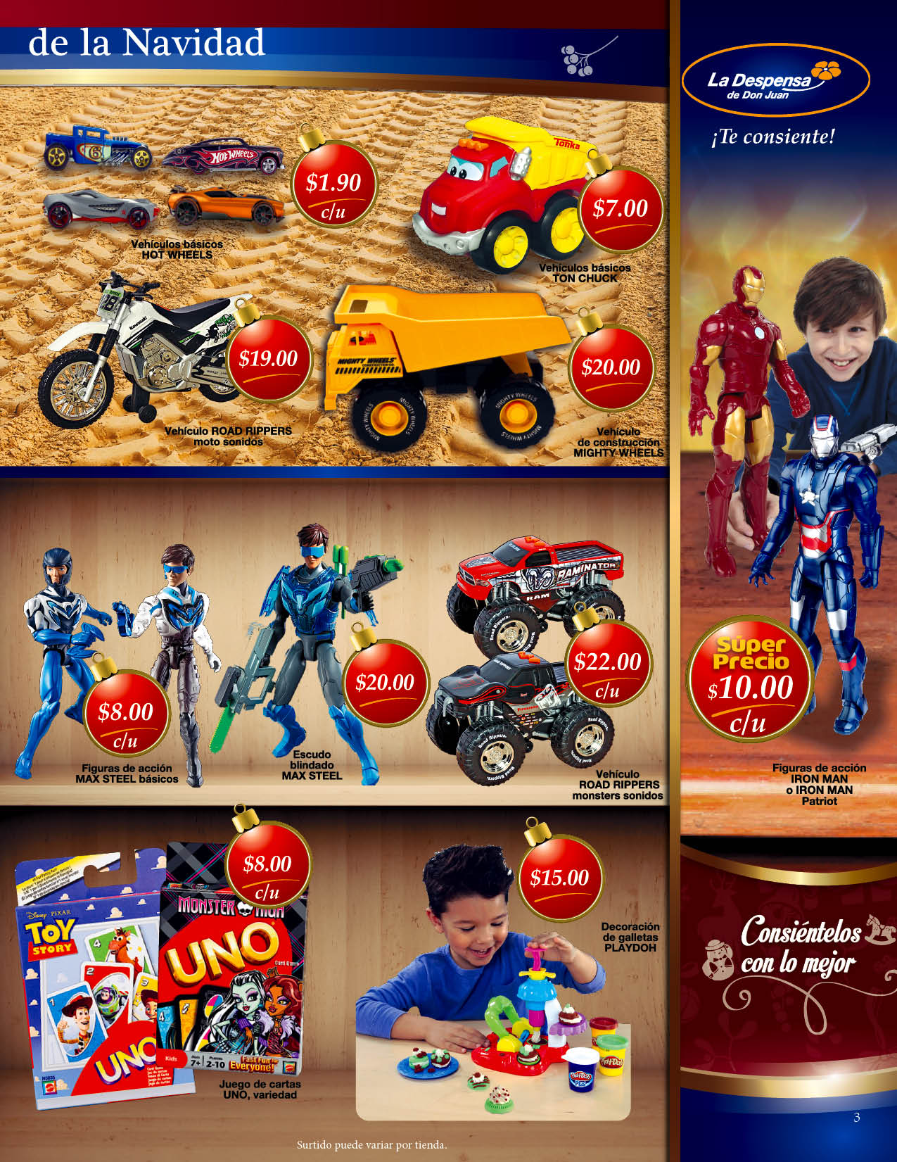 Don podras encontrar una gran variedad de novedosos juguetes como muñecas barbie, carros, super heroes, peluches, juegos de mesa, tractores, rompecabezas, transformes,