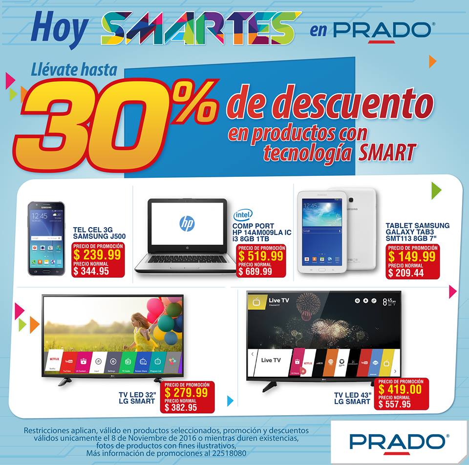 Promociones SMART de ahora martes en tiendas PRADO – 08nov16.