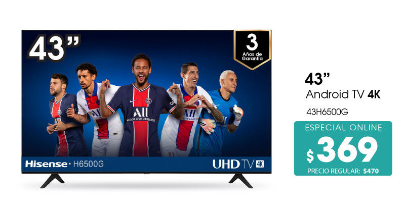 Válido por compras desde $99. No aplica en computadoras ni PlayStation. Máximo 2 productos por cliente. Esta promoción excluye otras vigentes. «CUOTAS sin intereses para comprar tv smart hisense en omnisport junio 2021» «Omnisport descuento smart TV marca HISENSE 4K junio 2021» «Omnisport Ofertas Especial de televisores smart TV marca HISENSE junio 2021» «Android TV 4K hisense promocion almacenes omnisport el salvador mayo 2021»