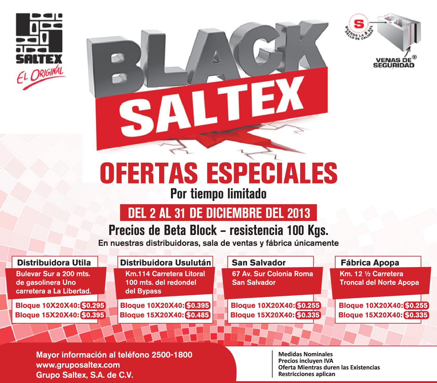 * Ofertas especiales en SALTEX ladrillo