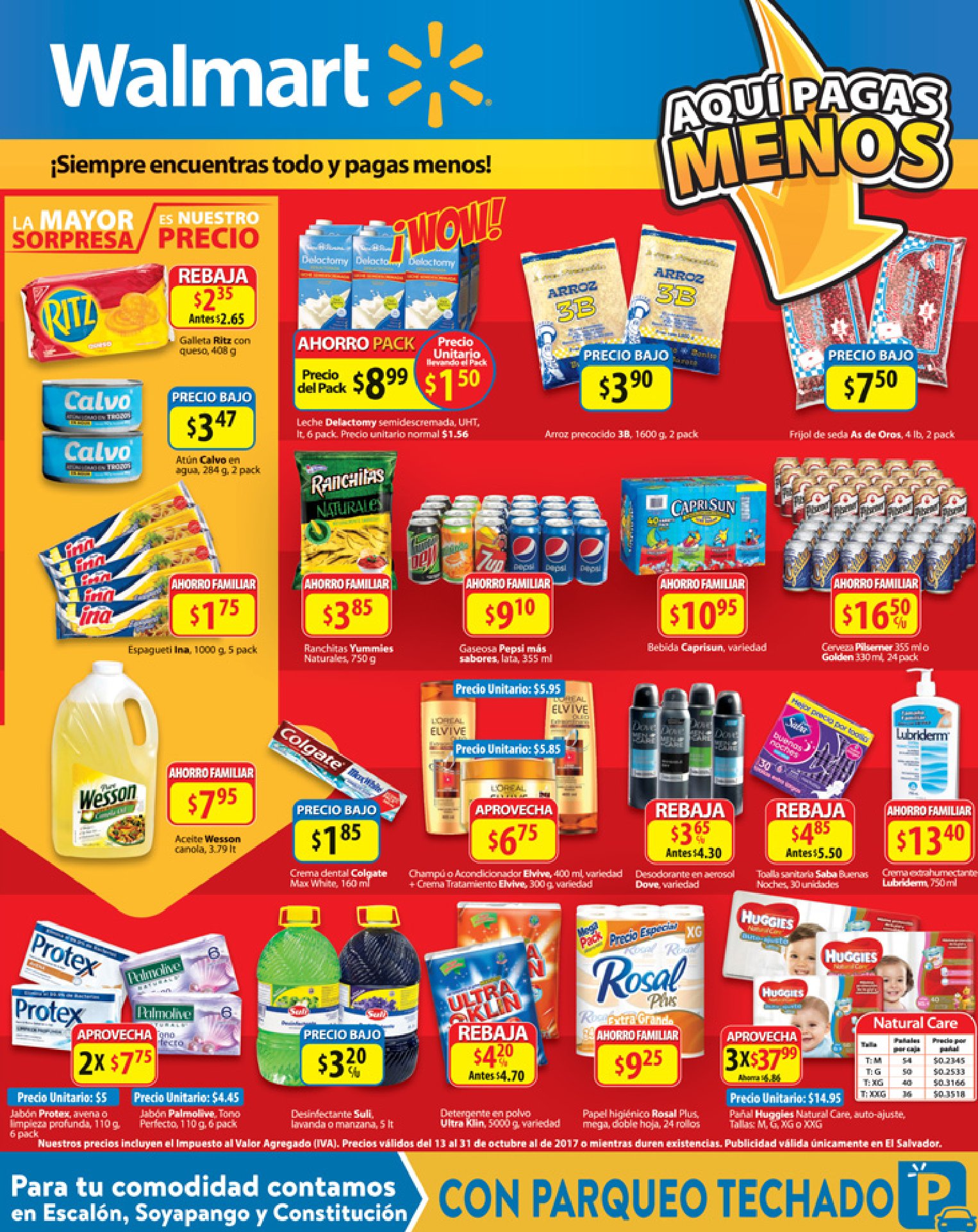 Oferta 2×1 aplica únicamente hoy 12 de octubre de 2017 por compras de $5 en productos generales, productos idénticos con mismo código de barras y máximo 1 oferta por cliente. Oferta no aplica en compras realizadas en