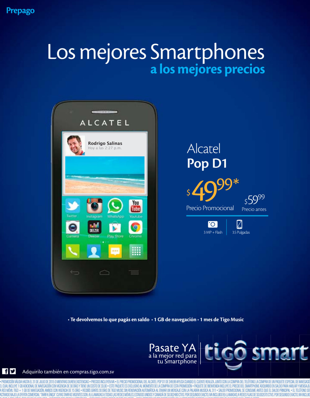 ALCATEL POP en oferta por 50 dolares de TIGO smart