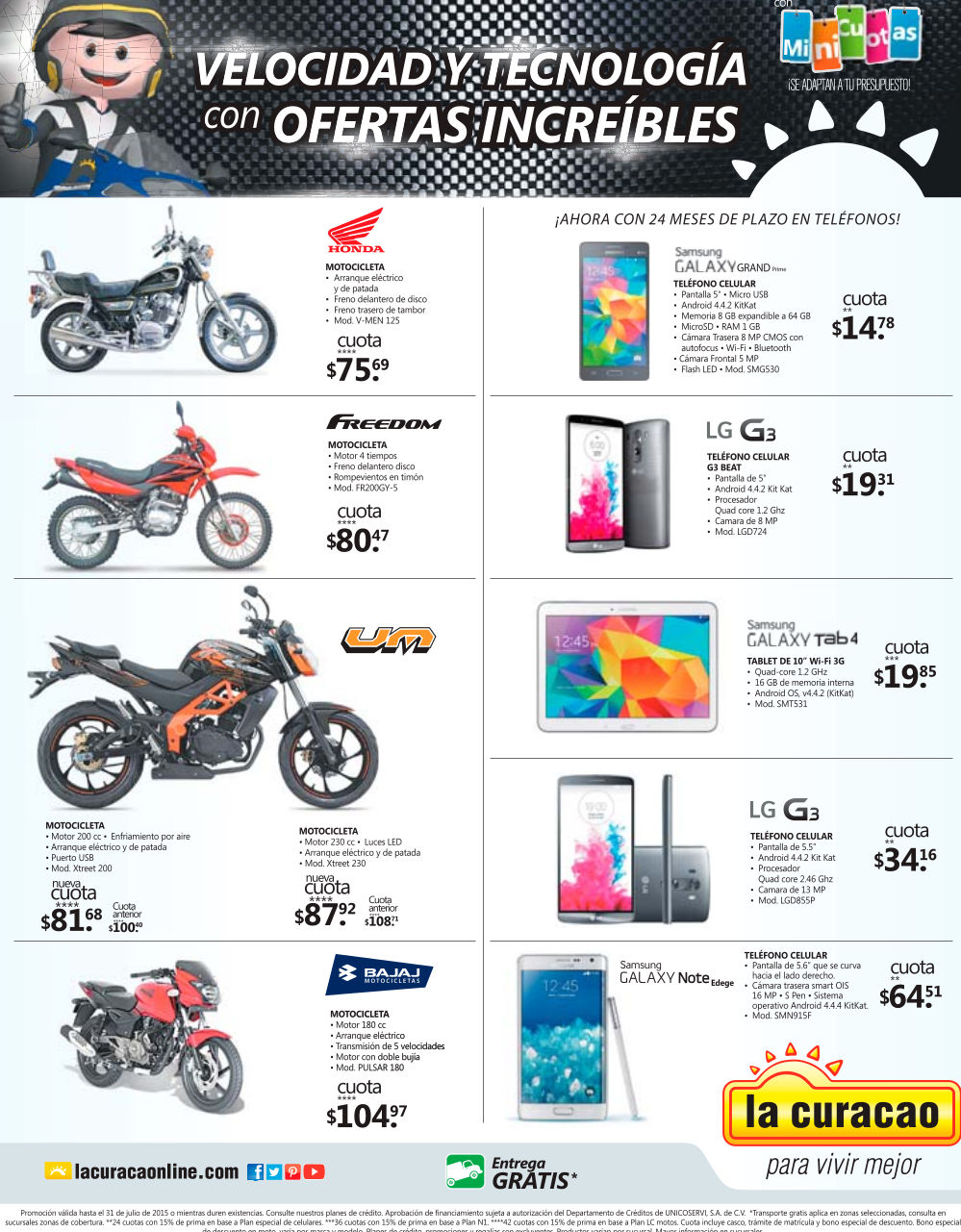 Hola amigos/as un saludos y muchos exitos en este LUNES, ya es hora de ir pensado como vamos a disfrutar las vacaciones asi que te sugerimos ver nuestro catalogo hoy dia porque Iniciamos la semana RODANDO estas promociones (13-jul-15)