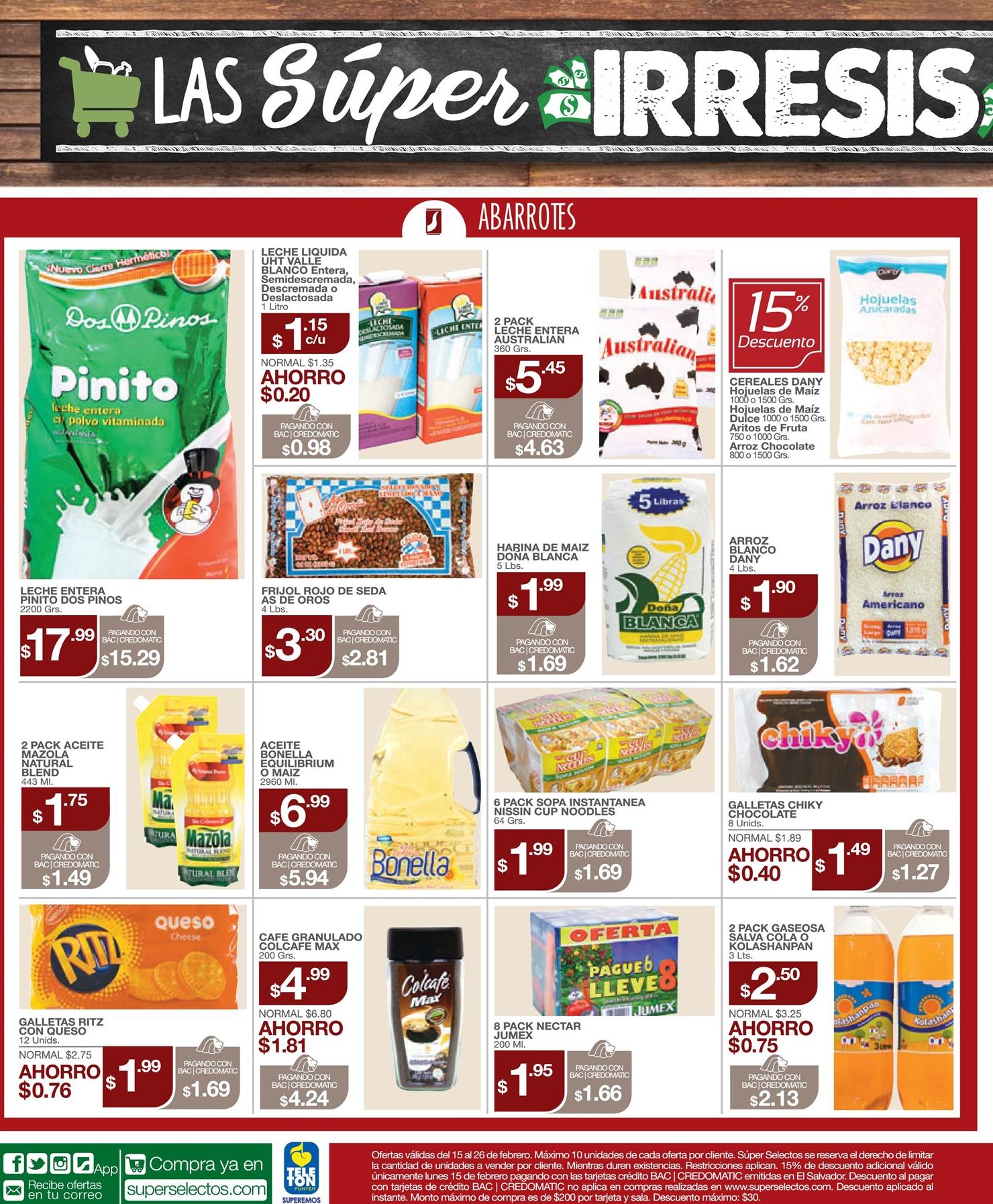 Hola amigos, como la han pasado este fin de semana lleno de amor y amistad. Iniciamos la semana enamorados de estos descuentos (15-feb-16). Ven a conocer mas promociones en esta incio de la segun quincena de febrero 2015, muchas sorpresas en tus supermercados favopritos.
