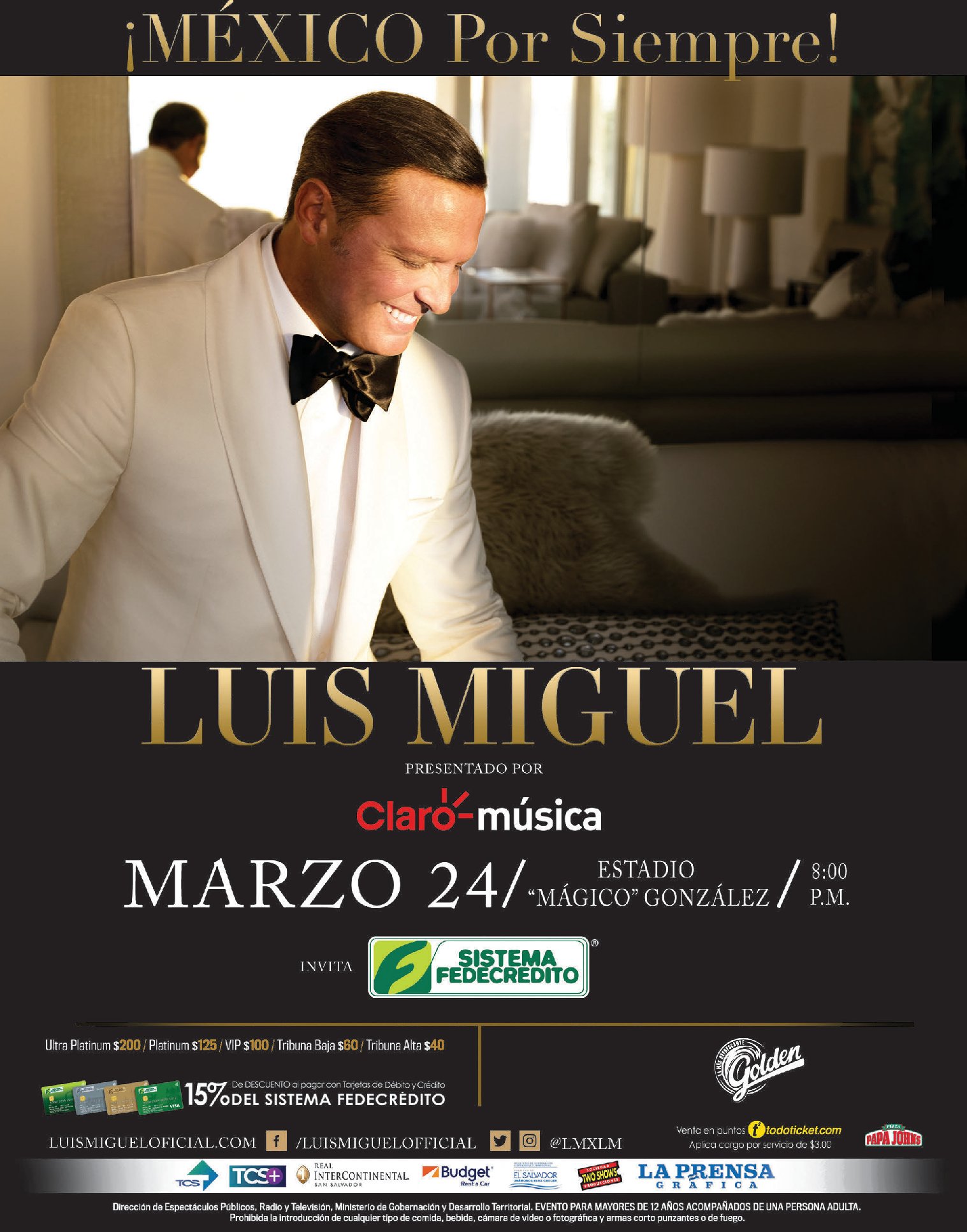 Gana 5 dolares con tus remesas a traves de DAVIPLATA. Precios del concierto de LUIS MIGUEL el salvador 2019.