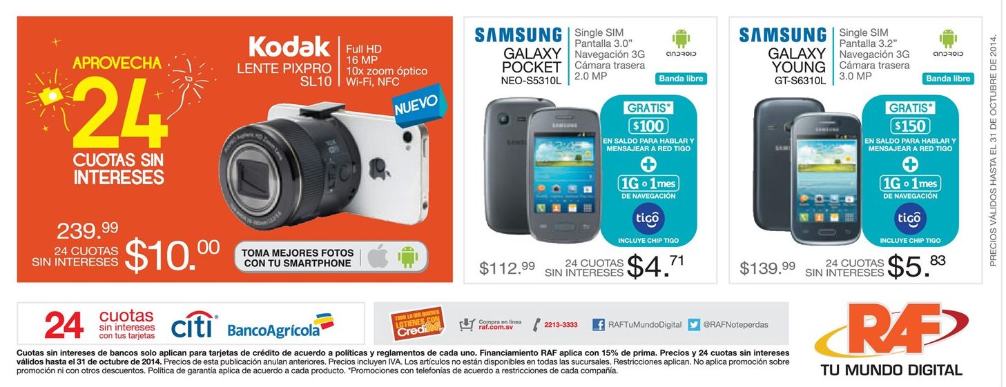 No olvides tambien revisar las promociones en TECNOLOGIA: RAF, RadioShack, Siman, La Curacao, Walmart