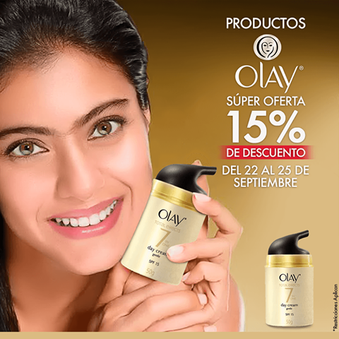 Aprovecha el 15% de descuento en este producto #Olay en Súper Selectos y superselectos .com Oferta válida del 22 al 25 de septiembre de 2017. Máximo 10 unidades por cliente. Mientras duren las existencias. Restricciones aplican.