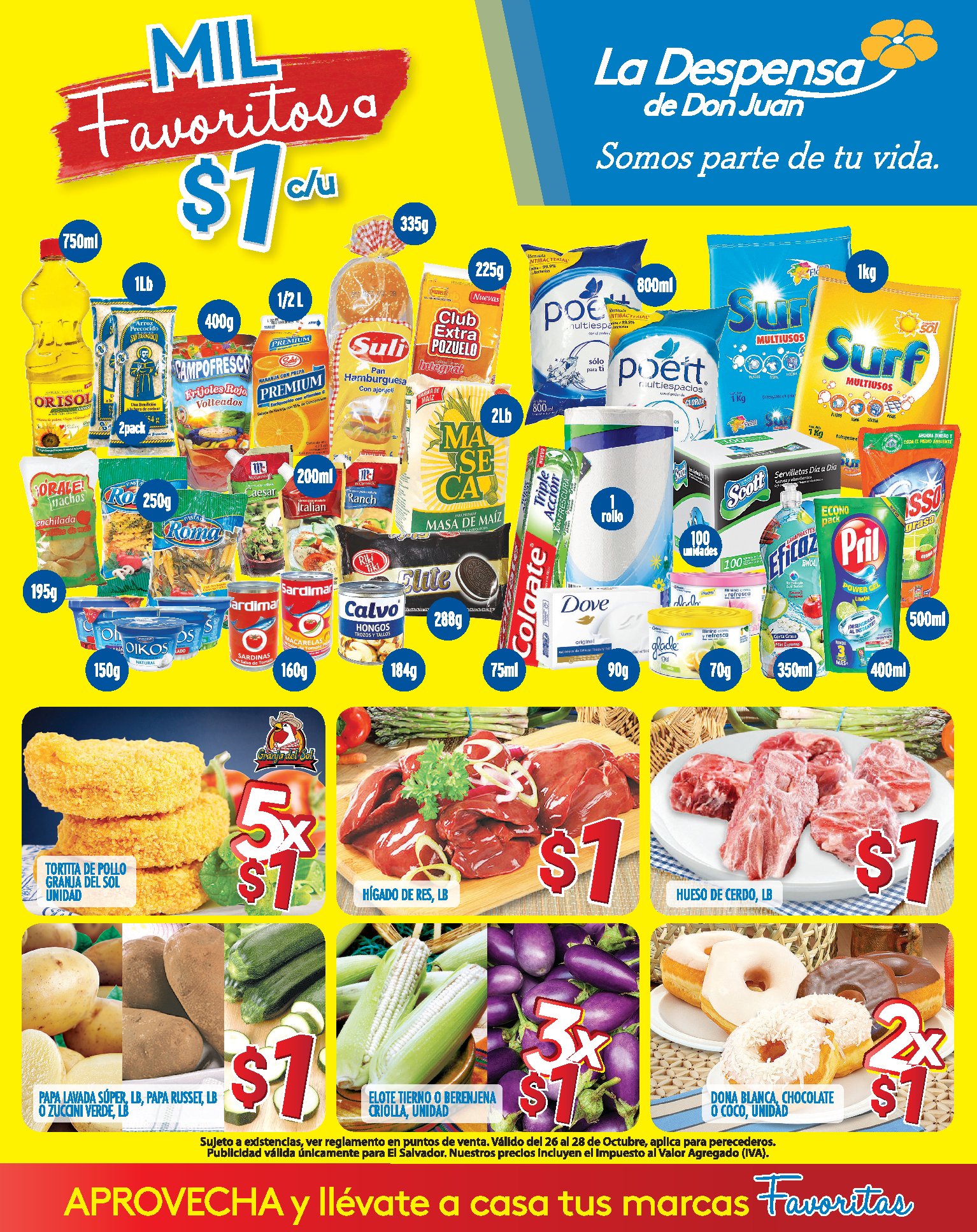 Conoce y accede a mas de 1000 productos disponibles desde $1 (DOLAR), si deseas ahorrar en tus compras del supermercado la despensa de don juan el salvador tiene muchas promociones para este fin de semana.