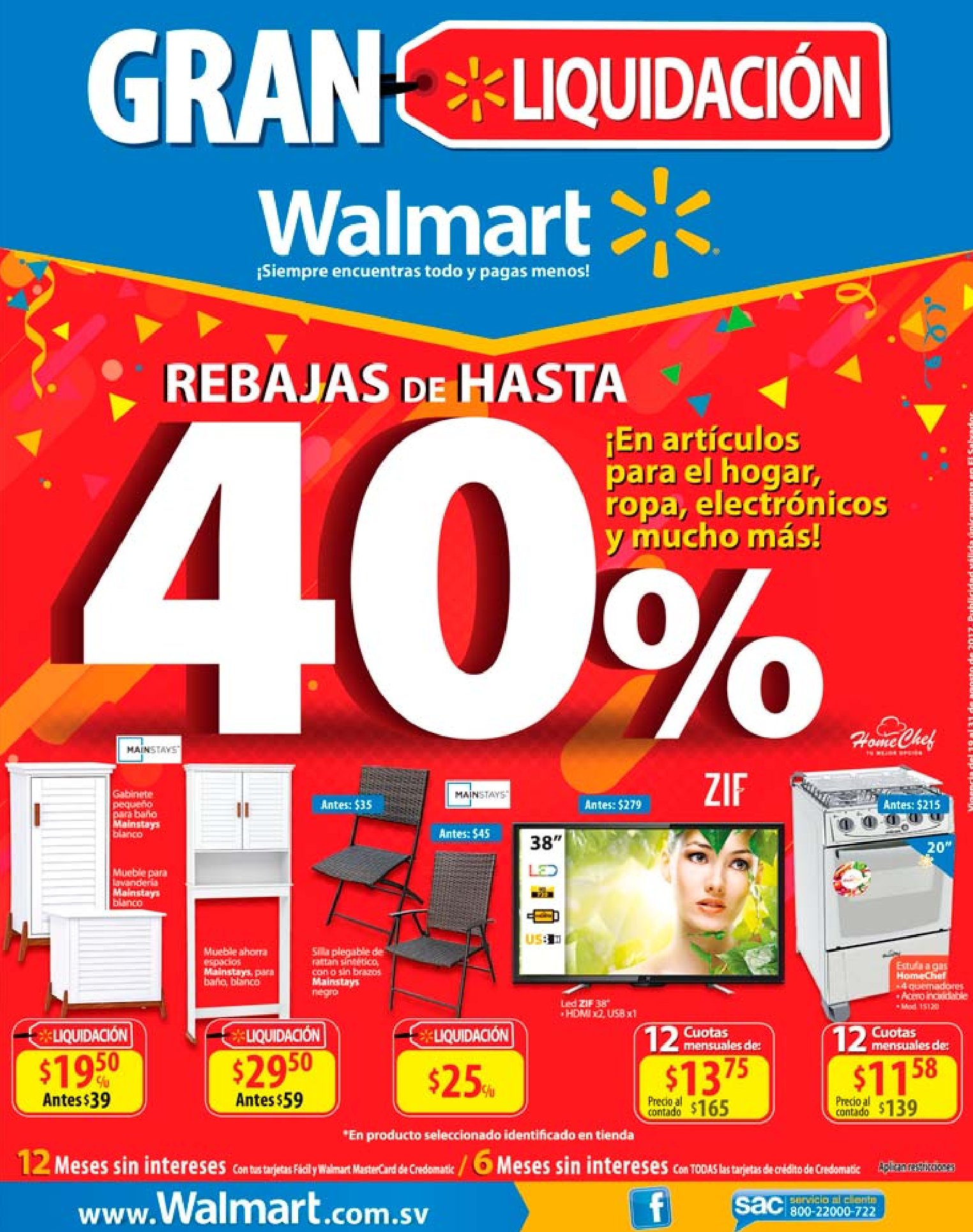 ¡Equipa tu hogar! Ven y aprovecha la gran liquidación de Walmart. *Aplican restricciones/condiciones. OFERTAS validas hasta el 31 de agoato de 2017.