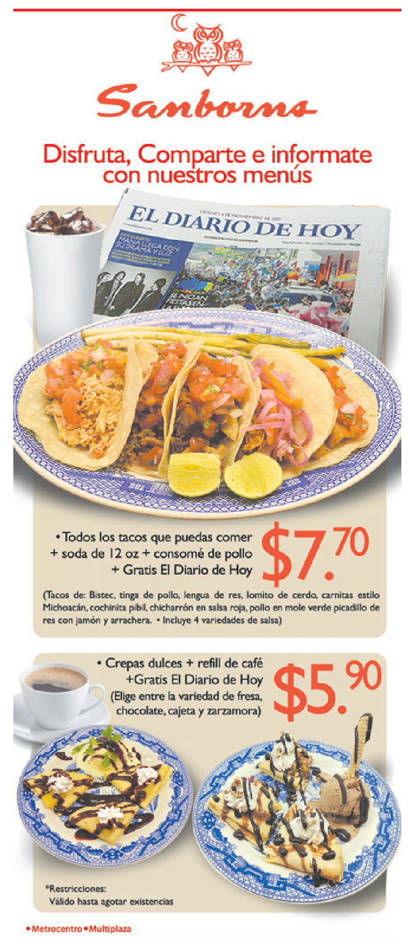 * Restaurante SAMBORNS promociones