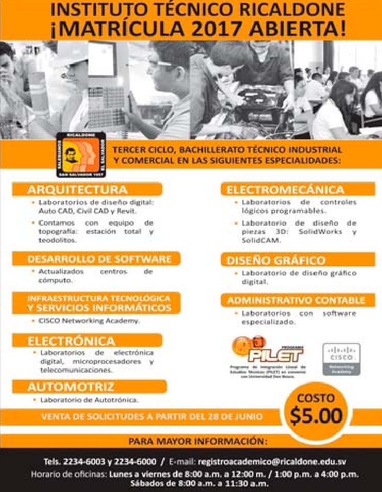 Matricula INSTITUTO Tecnico Ricaldone el salvador