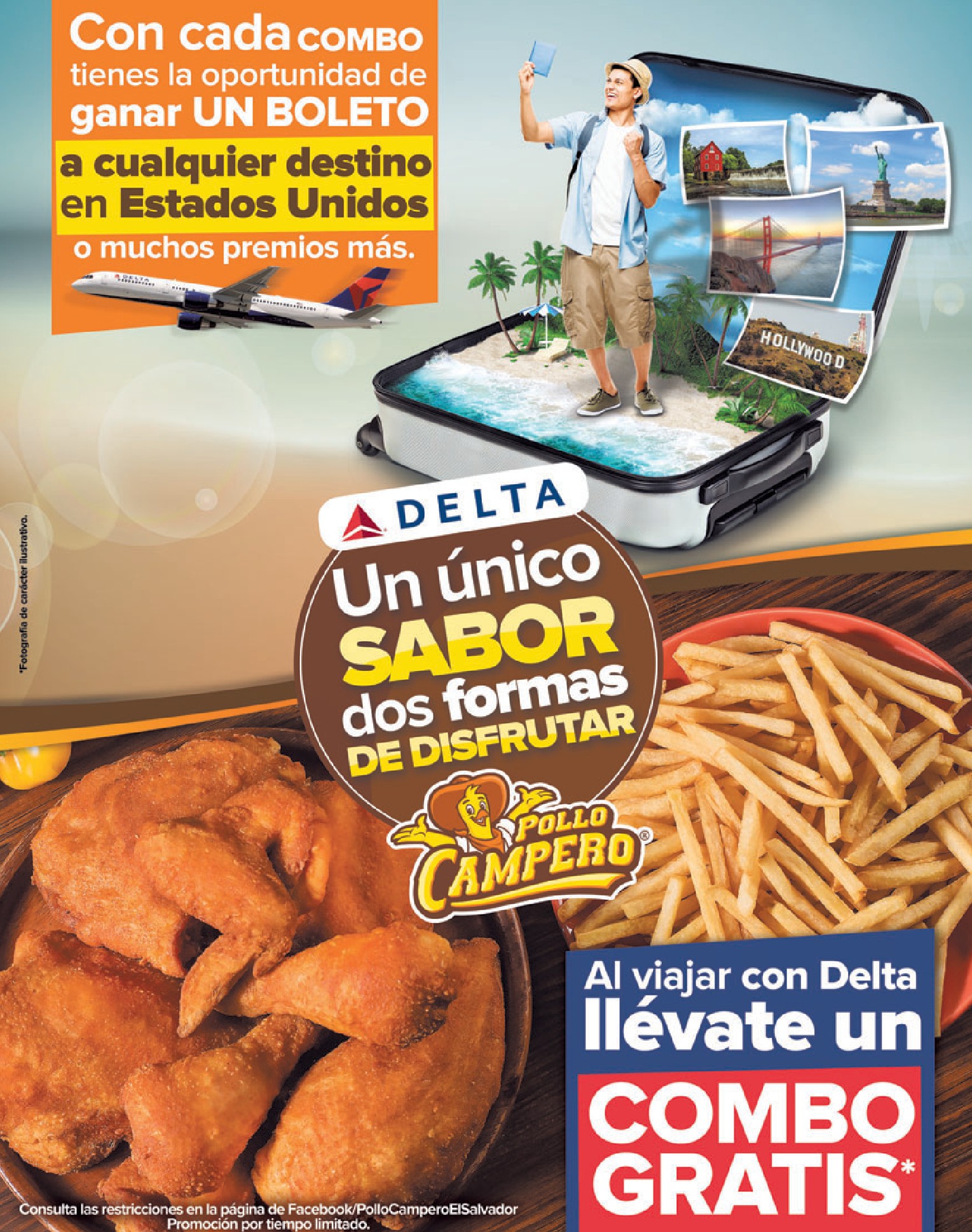 * POLLO CAMPERO el salvador promocion combo DELTA airlines EEUU (722)