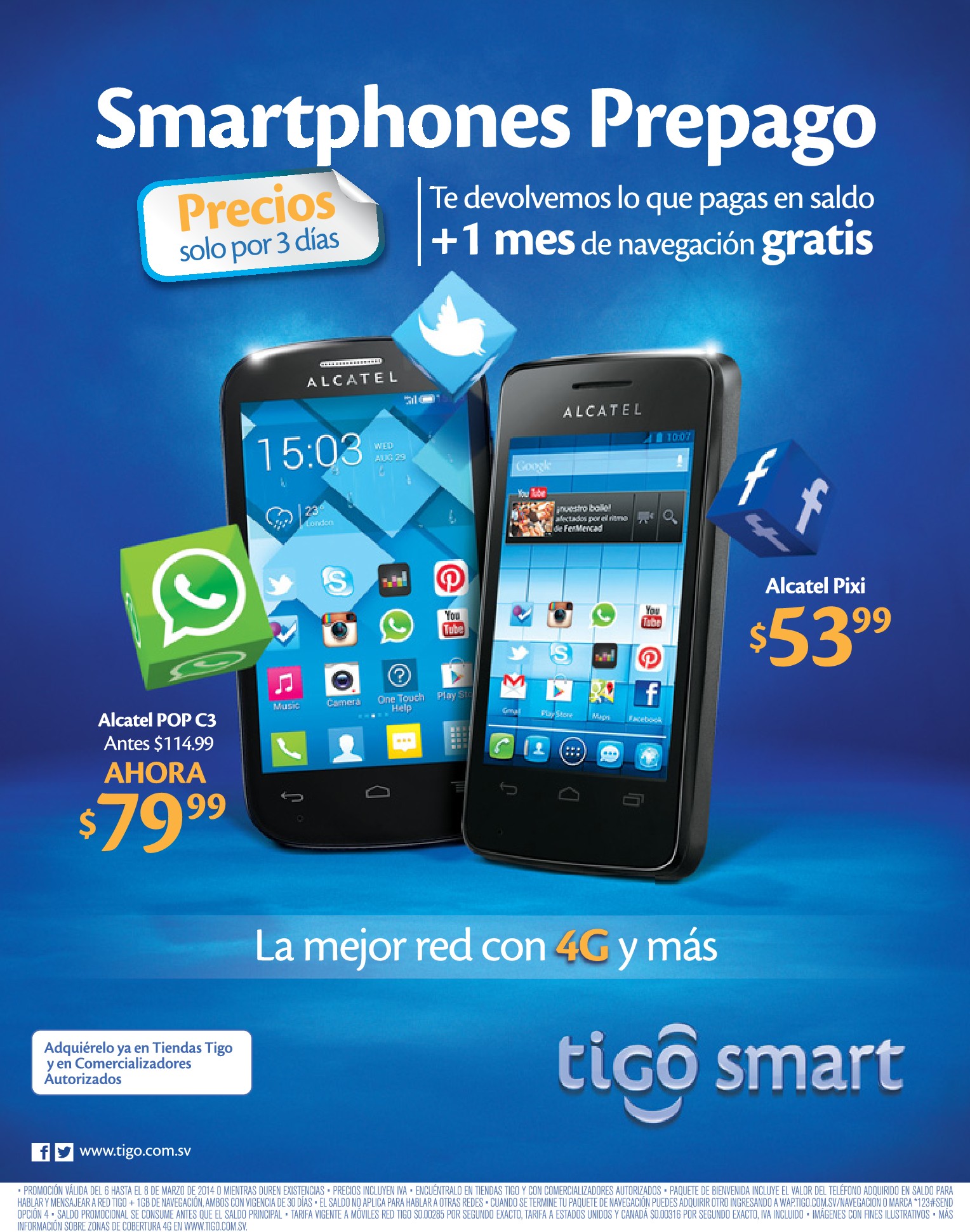 * SMARTPHONE prepago ofertas TIGO ALCATEL Pixi POP C3 – 06mar14 (518)