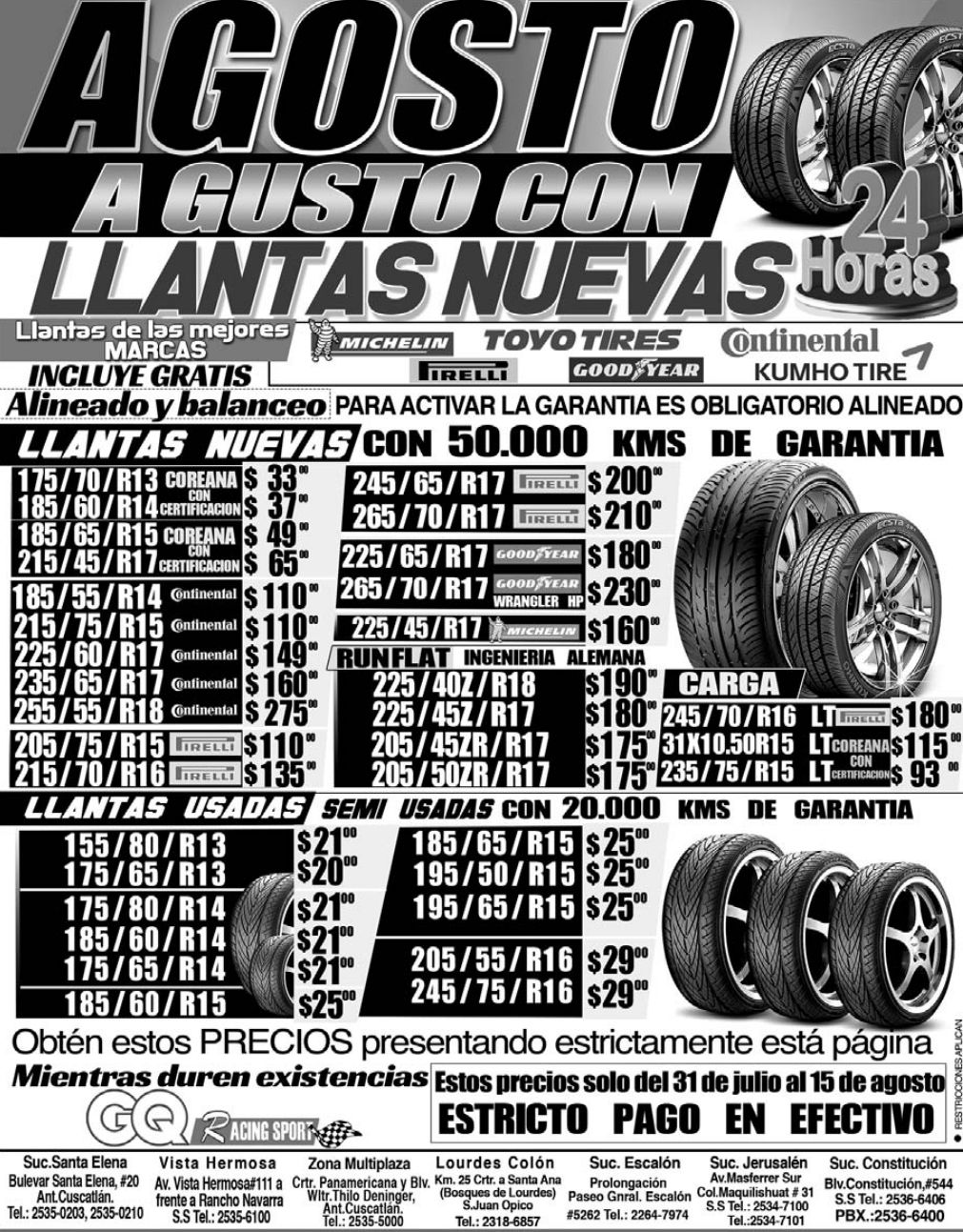 AGOSTO es momento de tener llantas nuevas promociones y ofertas