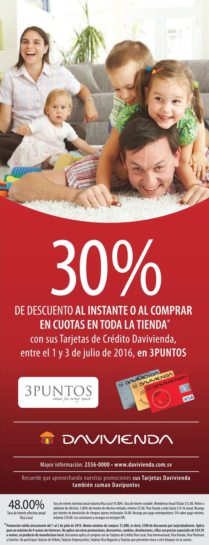 Obtiene 30 off en tienda 3 puntos con davivienda