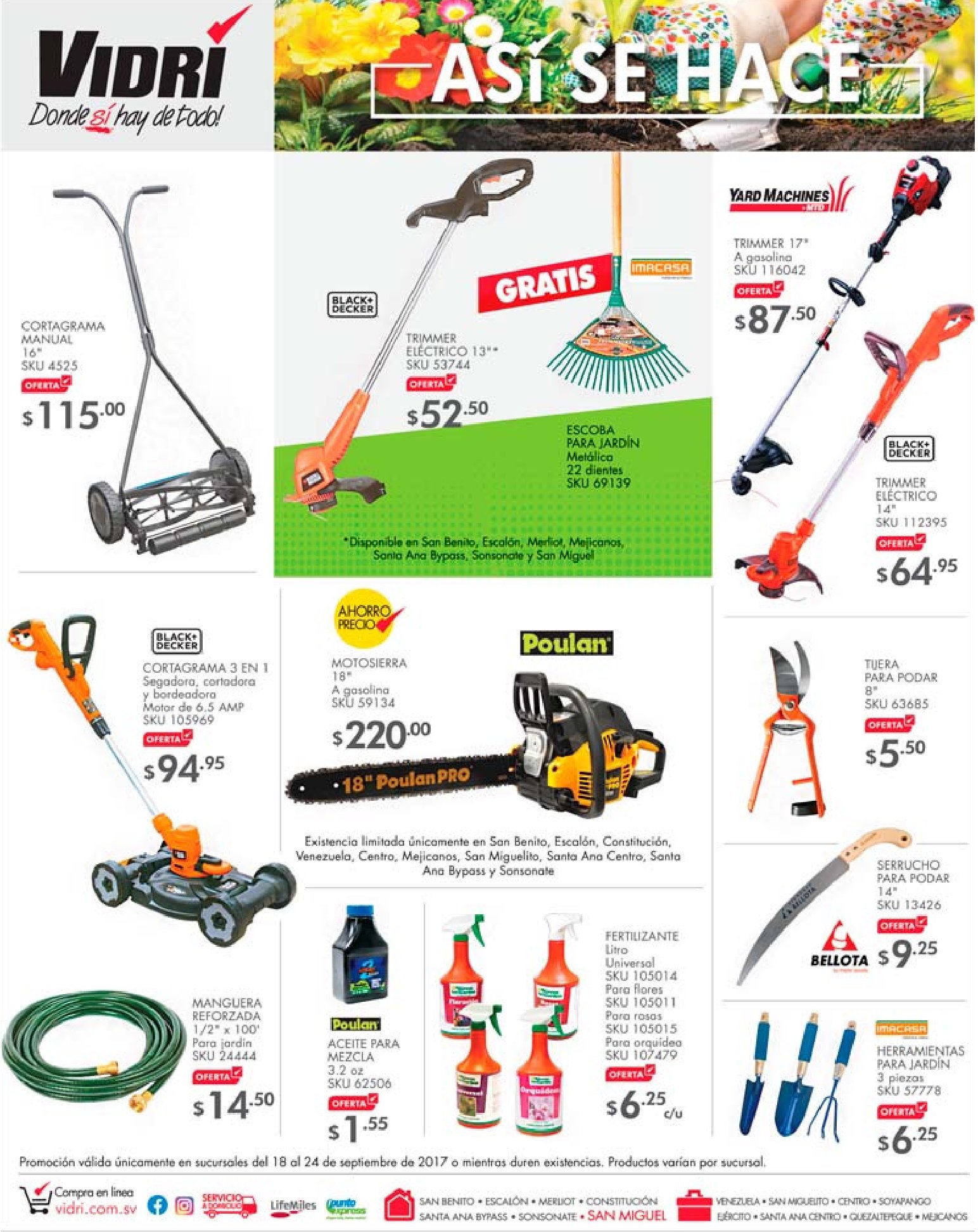 CYBER DAY descuentos en la tiendas VIDRI en linea – 18sep17. FERROMAX soluciones en hierro y techos. Herramientas y Productos pra trabajos de electricidad. Liquidaciones en iluminacion via EPA el salvador. Persianas romanas con descuento ferreteria epa. TALADRO percutor con 50 off te lo imaginas. VIDRI descuentos en prodcutos y herramientas para jardineros.