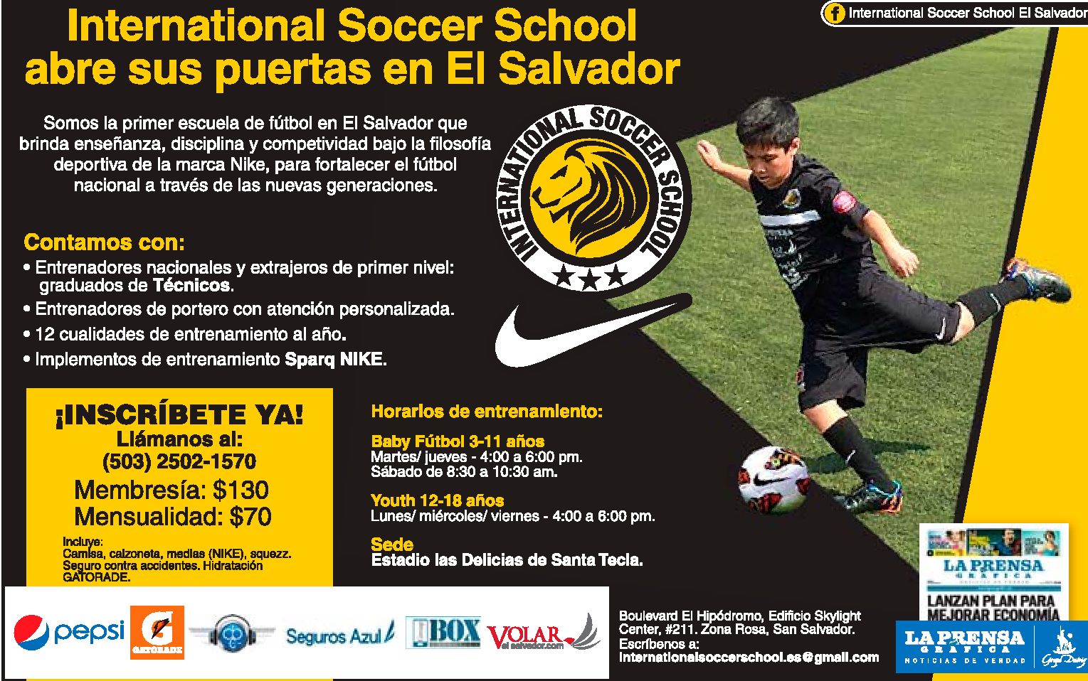 Escuela de futbol INTERNATIONAL soccer school el salvador.