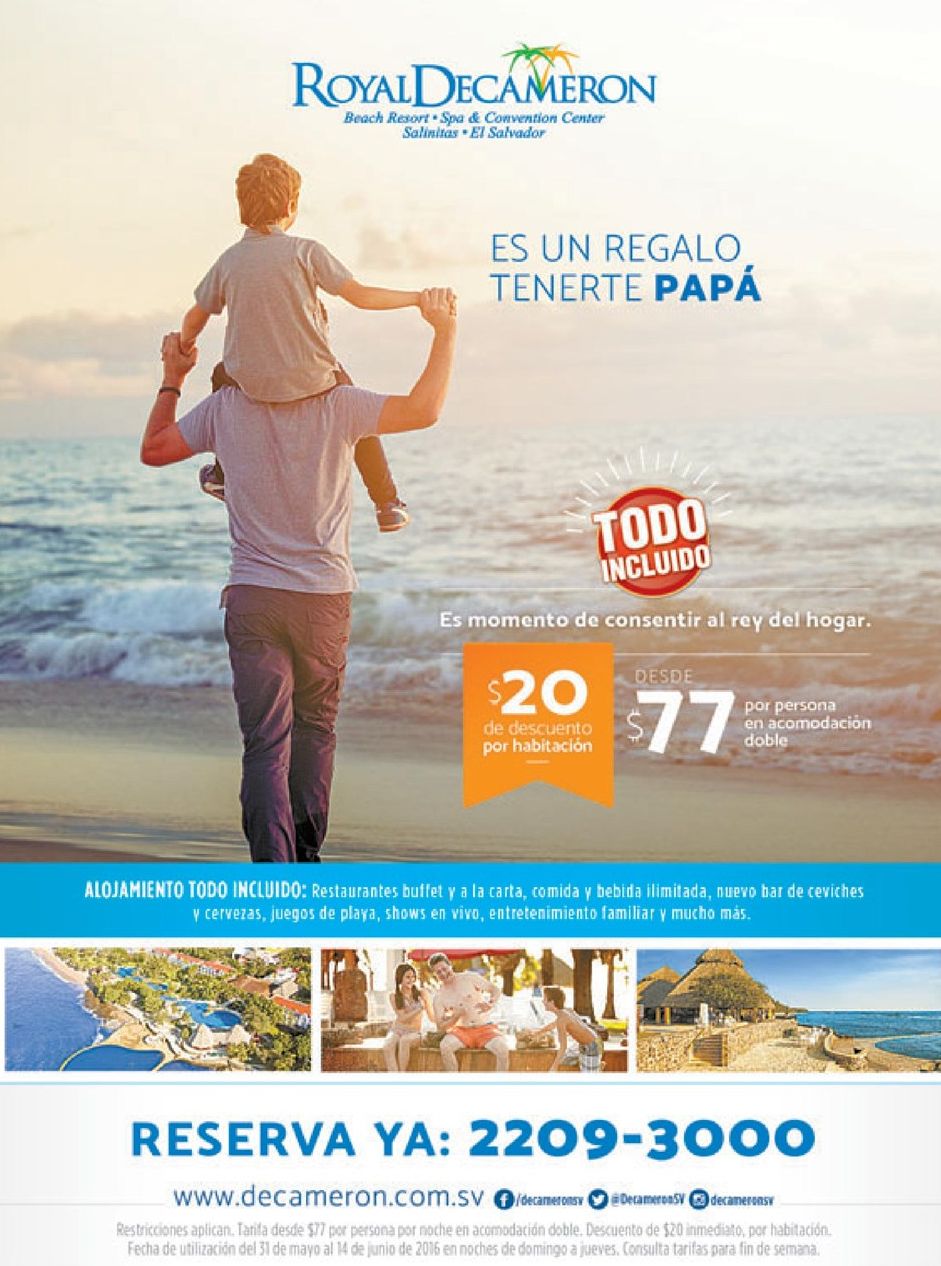 Reserva para PAPA un dia en la playa DECAMERON salinitas.