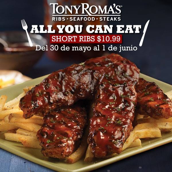 Todas las costillas que podas comer en TONY ROMAS por 10 pesos con 99 ctvs.