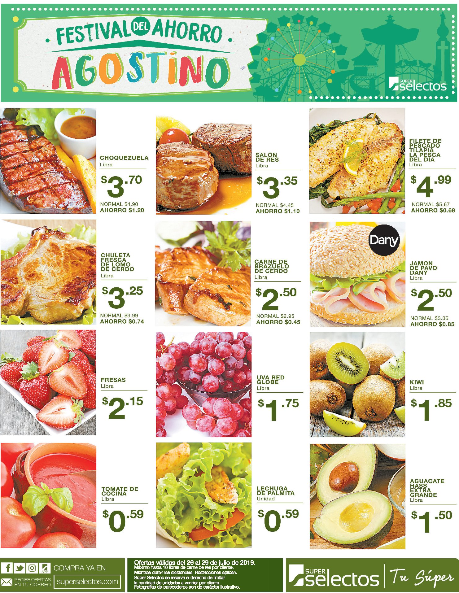 Aprovecha las #MegaOfertas de hoy desde las 4:00 p.m. en Súper Selectos Ofertas válidas el 26 de julio de 2019, a partir de las 4:00 p.m. Súper Selectos se reserva el derecho de limitar la cantidad de unidades a vender por cliente. Mientras duren existencias. Restricciones aplican.