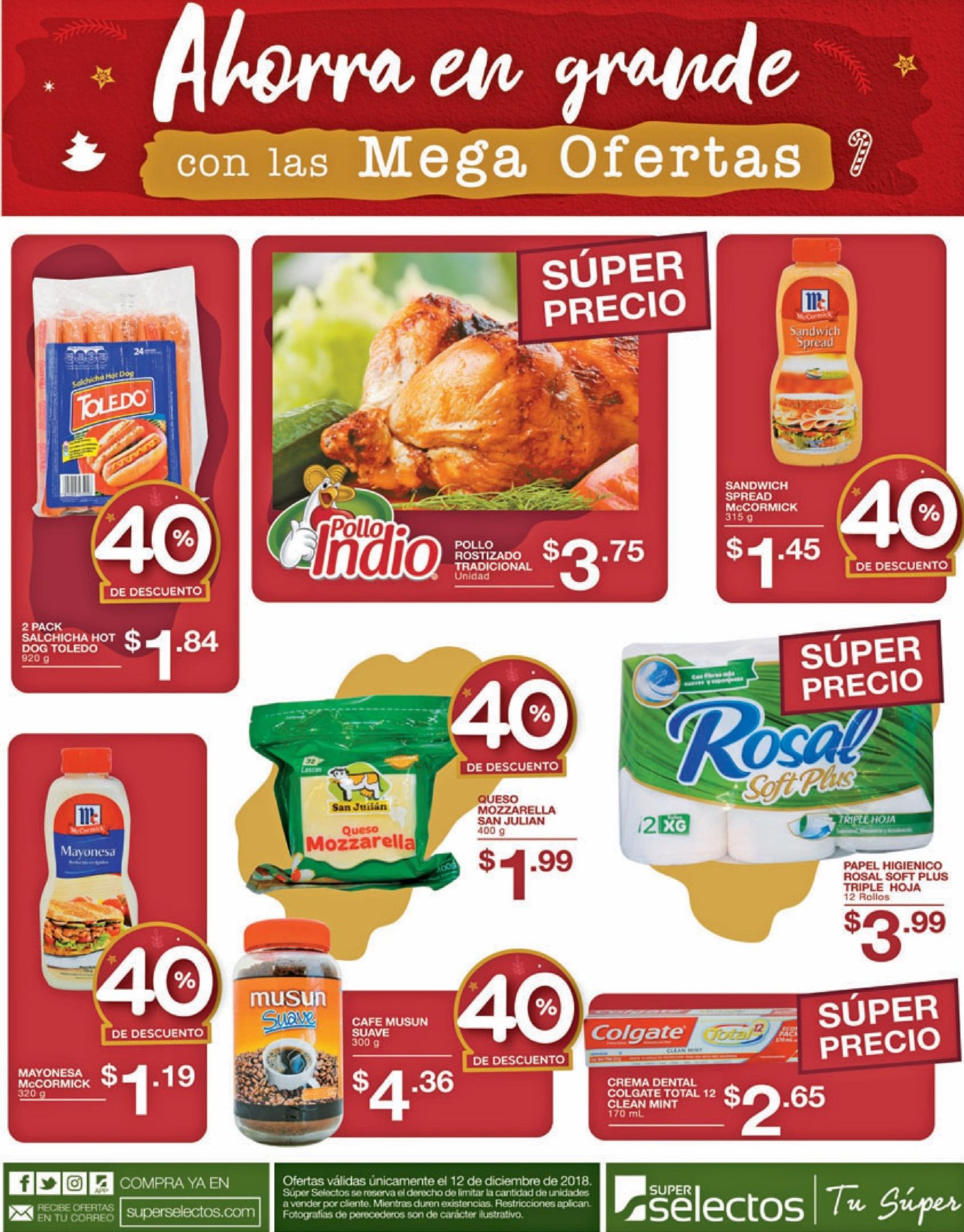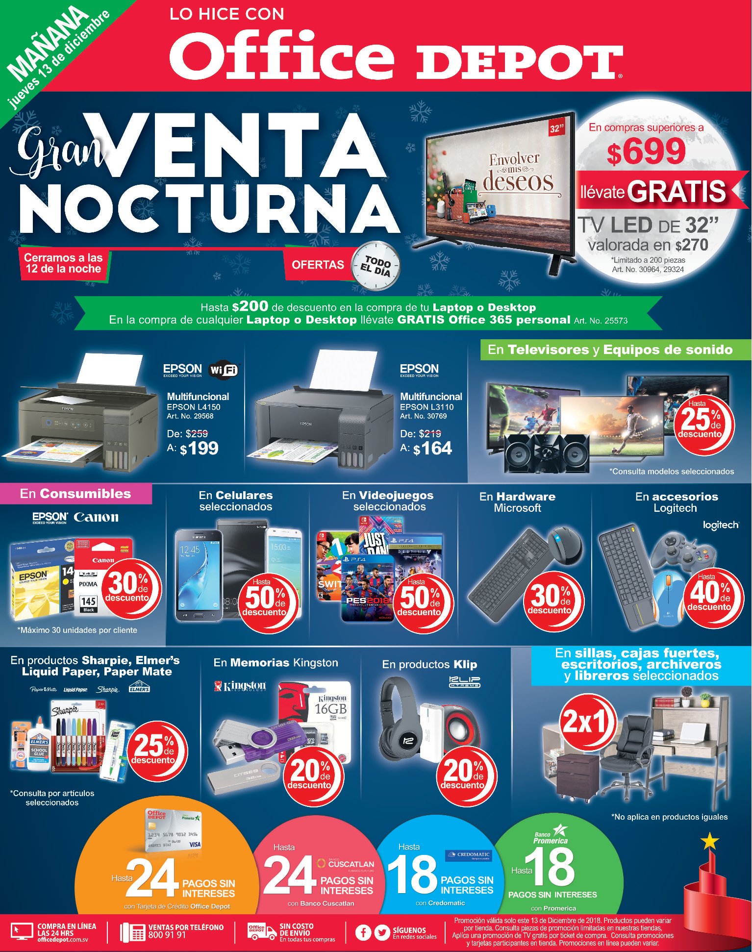 Ahora mas descuentos frescos para tu cena de navidad. Camas SIMMONS el mejor descanso en navidad 2018. Decuentos NAVIDAR 2018 en celulares huawei. Facil celebrar y ahorrar con BAC en la despensa. Jueves 13 de diciembre 2018 VENTA Nocturna Office depot SV. Las celebraciones de navidad merece compras del super.