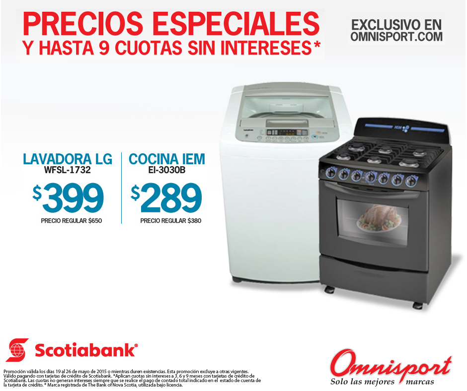 Precios especiales lavadora y cocina OMNISPORT online store
