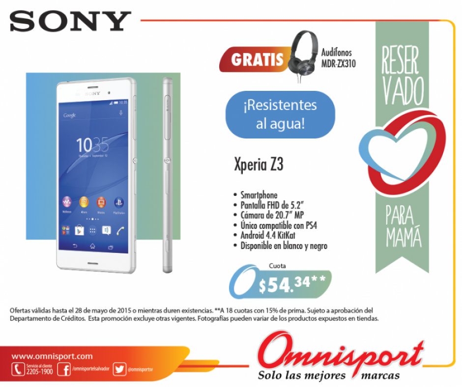 Sony XPERIA Z3 smartphone alta capacidad rendiemiento y resistente al agua