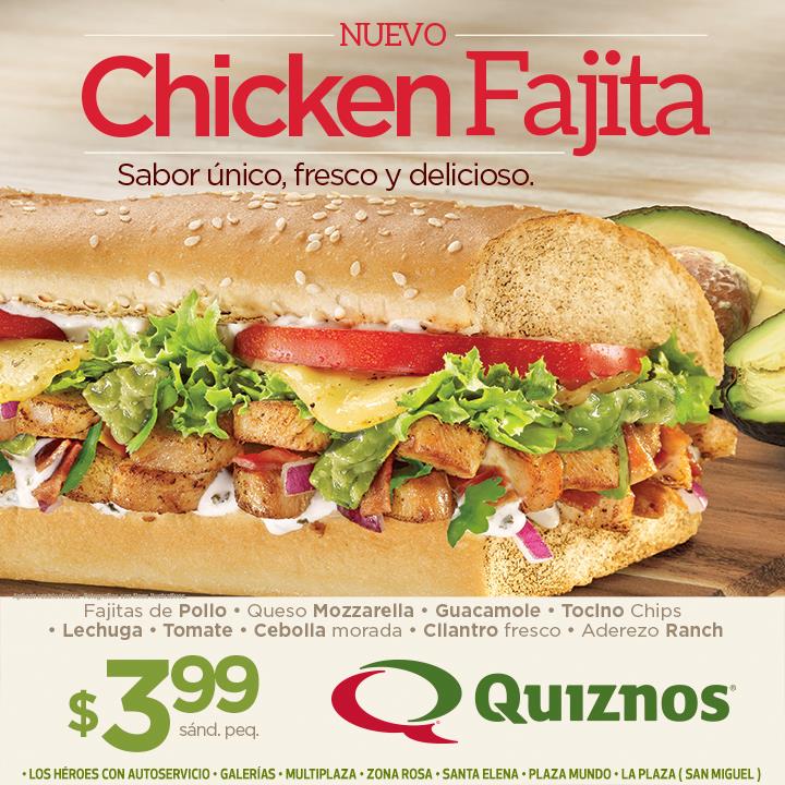 new CHIKEN fajita de quiznos por solo 3.99 de dolar