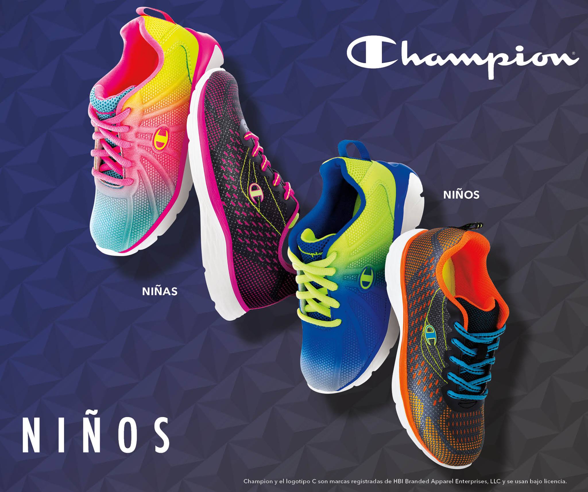 color tennis shoes CHAMPIONS brand for kids.