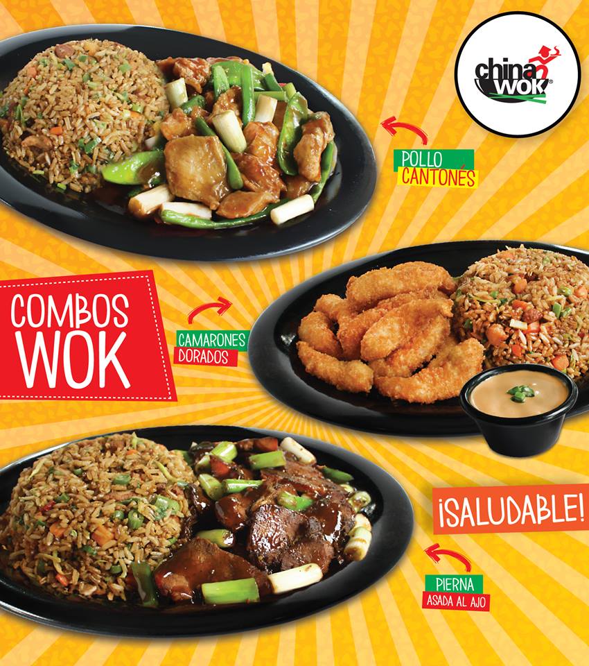 COMBOS WOK POLLO cantones CAMARONES dorados PIERNA asada al ajo