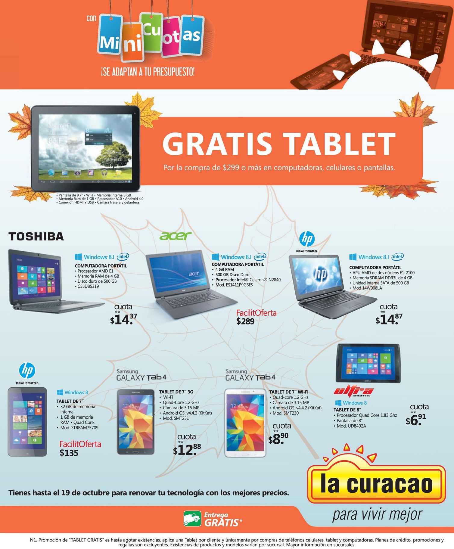 mini cuota para comprar tu TABLET o LAPTOP nueva via LA CURACAO.