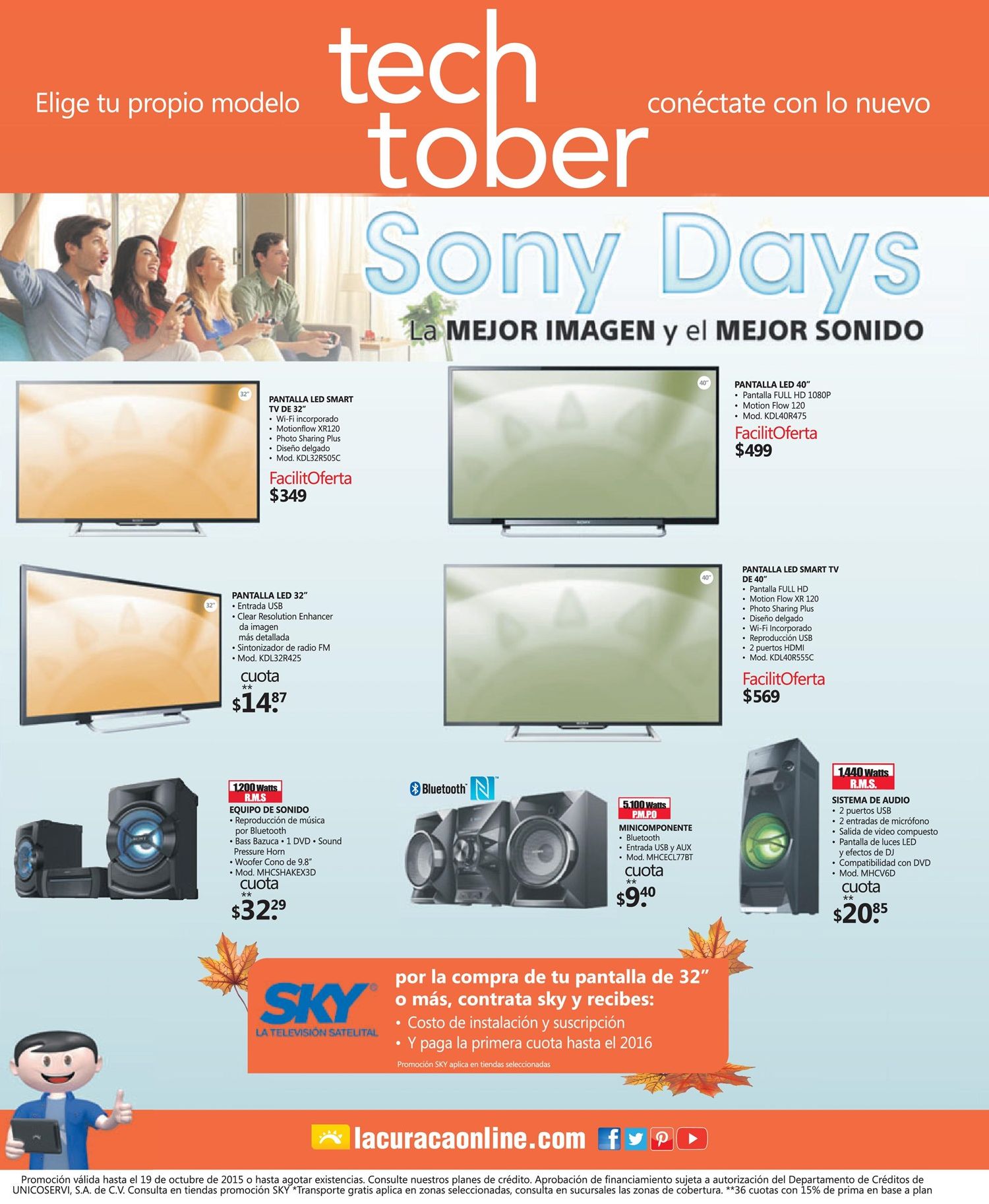 SONY DAYS promociones en pantallas y equipos de sonido con suscripcion SKY tv satelital.