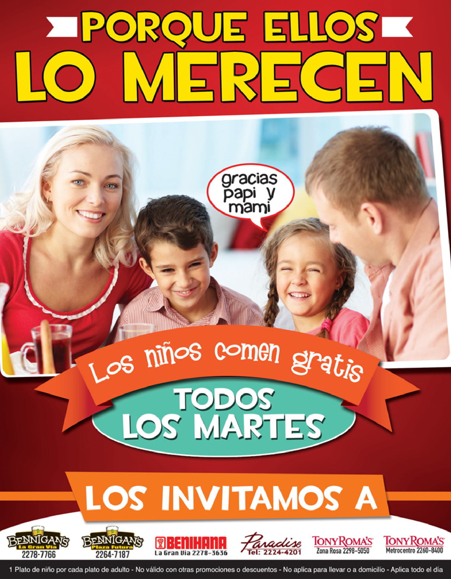 * Los niños comen GRATIS todos los martes