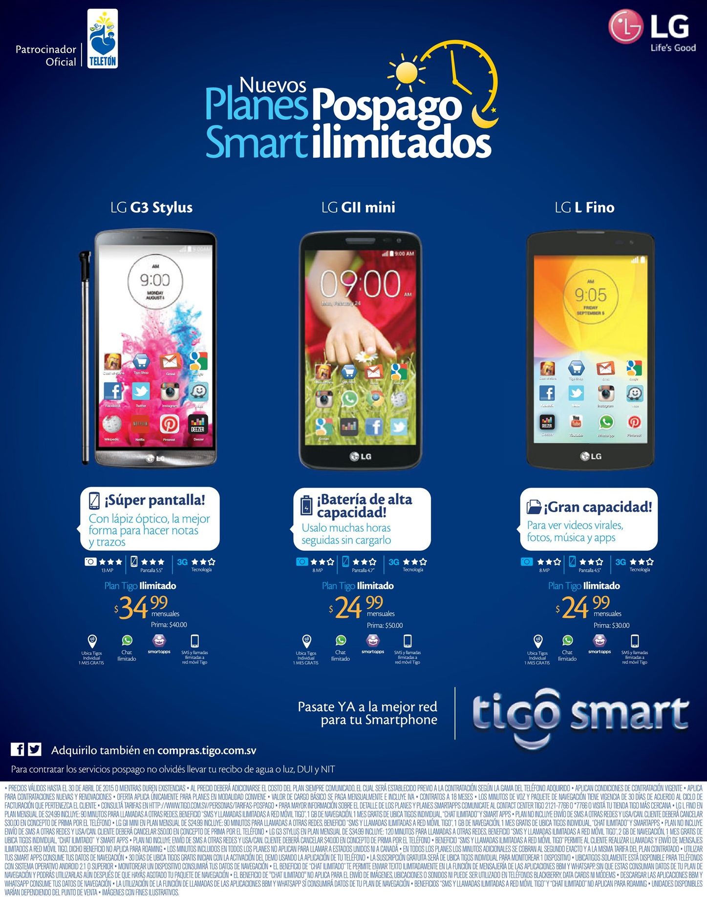 Planes SMART ilimitados de TIGO celulares LG – 25abr15