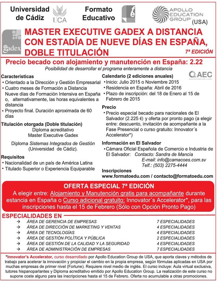 «High tension electric supplies EXPERT store – 26ene15» «Tonifica tu salud bajando peso LAIN solutions – 26ene15» «paquetes para tu auto – 26ene15» «cambiar las puertas de mi casa – 26ene15» «roof supplies FREUND ferreteria – 26ene15» «para la cuesta de enero OFERTA DON POLLO – 26ene15» «Master executive GADEX españa» «Programa de jovenes talento el salvador 2015» «KAPLAN medical residencia medica en Estados unidos» «International Study expo 2015» «Studies with world quality» «Poco pisto mucha hambre POLLO CAMPESTRE te hecha la manita – 26ene15» «informacion postgrados UCA – 26ene15» «GERMANY gol volkswagen MOTORS – 26ene15» «bussiness news el salvador» «como votar por diputados del PARLACEN 2015» «Love trip on the beach ROYAL DECAMERON resort – 26ene15» «Twin pack PEPSI COLA promotion – 26ene15» «high speed internet with ACER laptop windows8» «Whatsapp ilimited network access» «KOI sushi how do you roll – 26ene15» «plan pospago LG G3 stylus TIGO sv – 26ene15» «Architec paint colors for decorating – 26ene15»