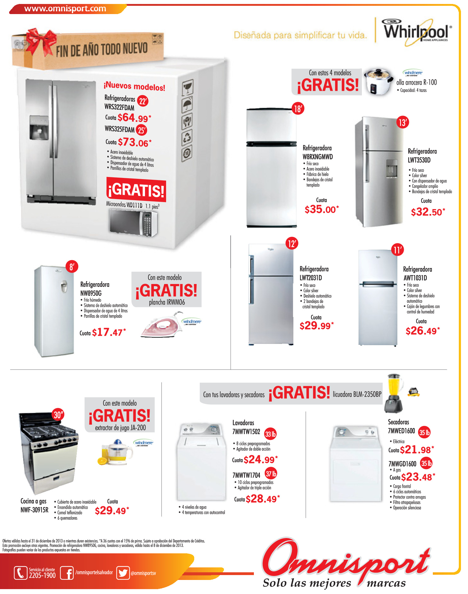 * Refrigeradoras WHIRPOOL ofertas omnisport.com.sv