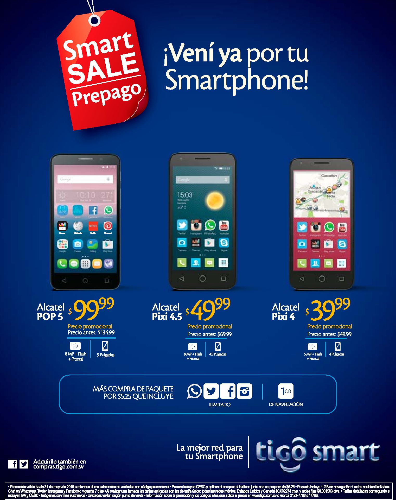 SMART sale prepago nuevas ofertas en celulares TIGO.