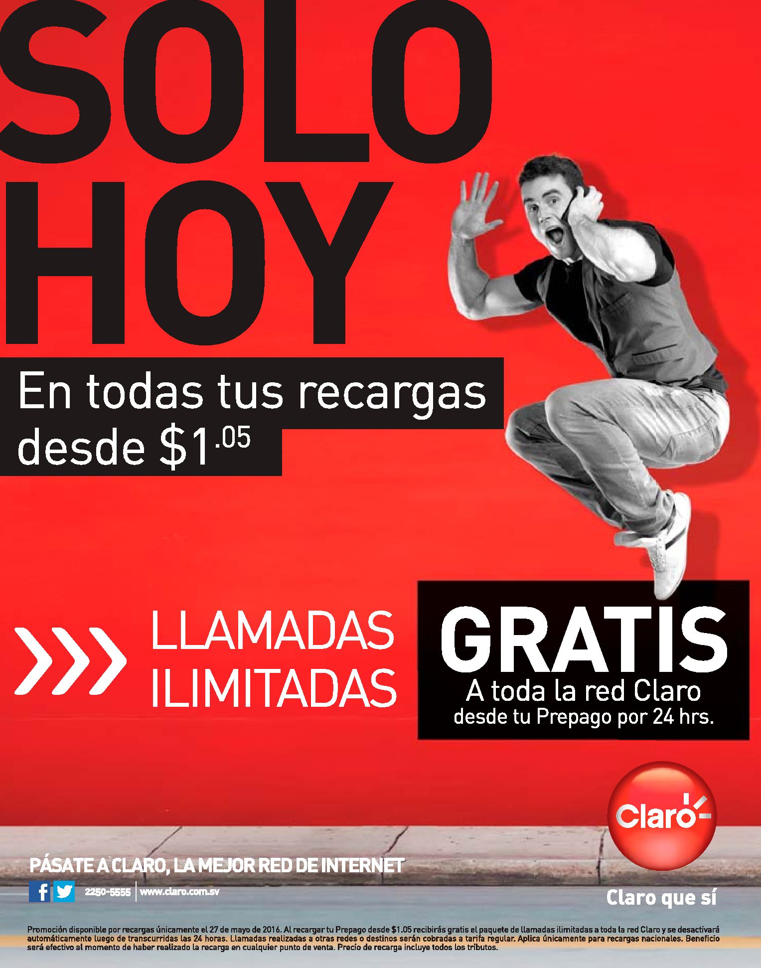 SOLO HOY viernes 27 de mayo llamada sin limite a RED claro.