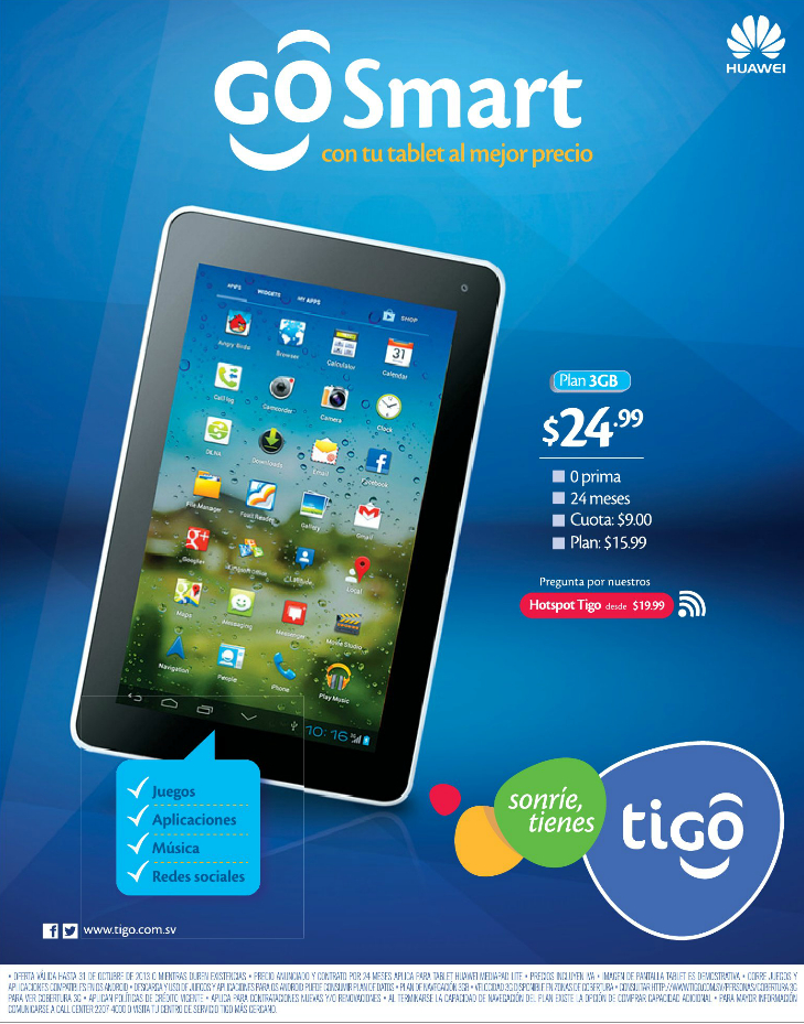 * Go smart HUAWEI tablet TIGO el salvador