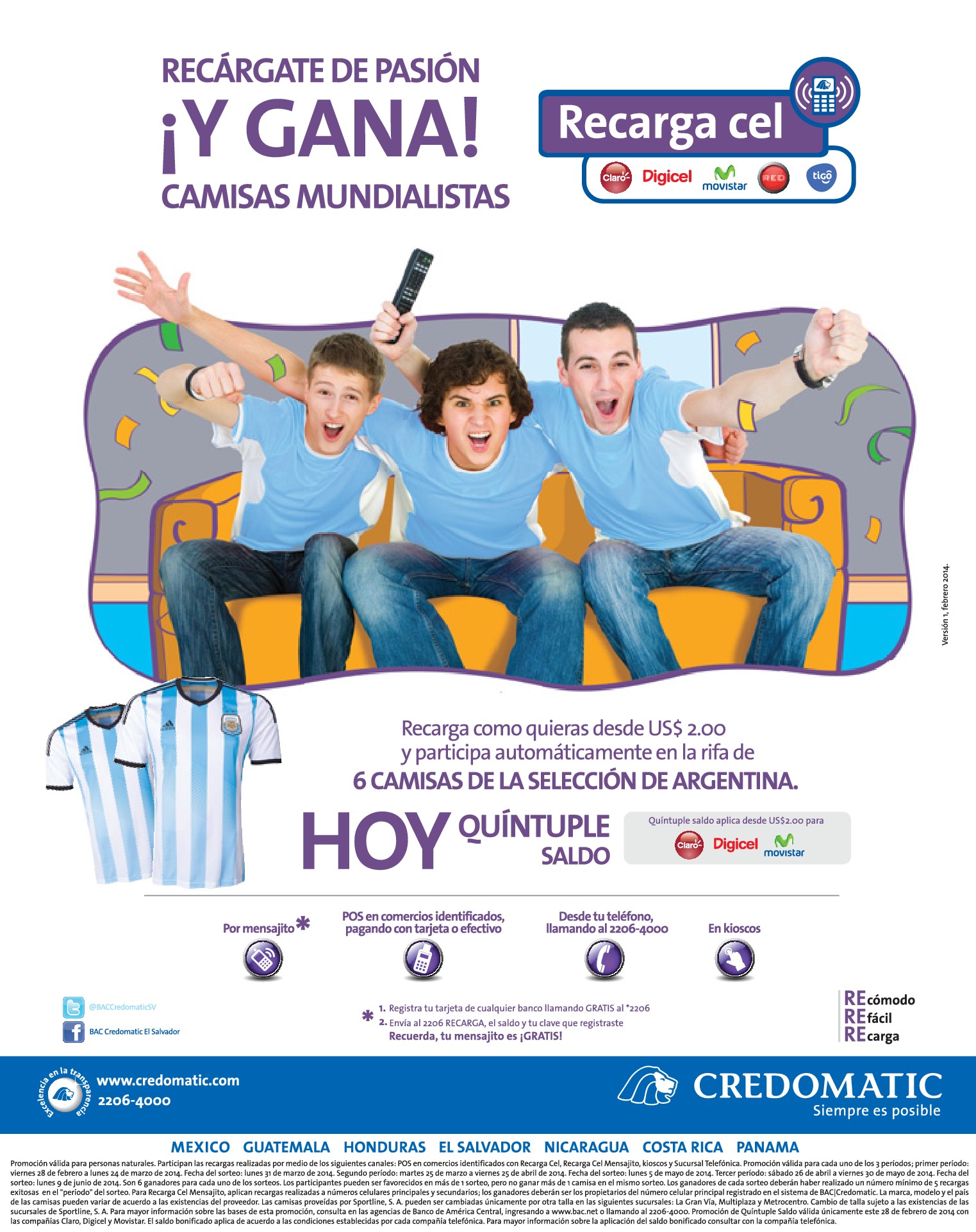 * Recarga CEL MENSAJITO credomatico quintuple saldo – 28feb14 (519)