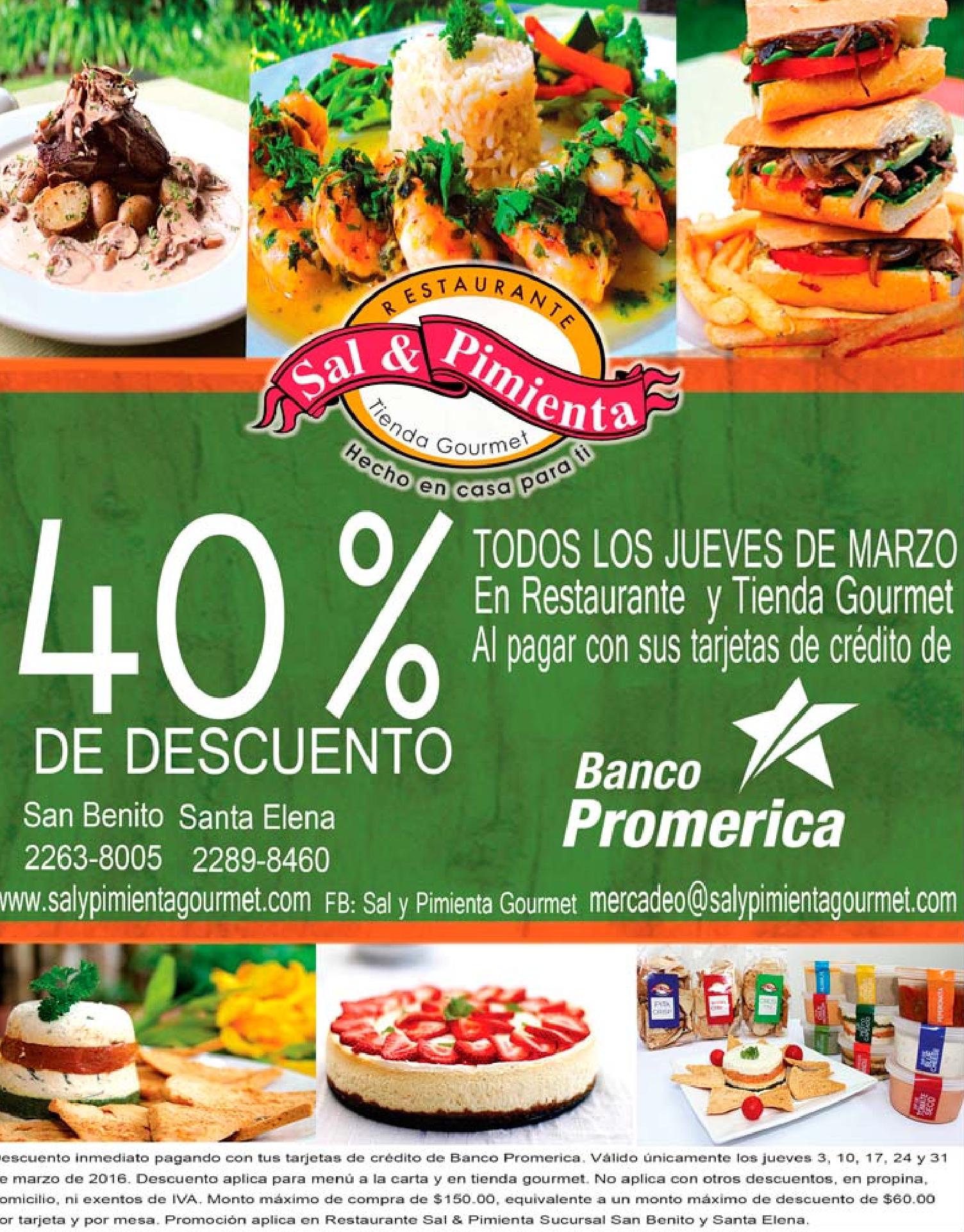 JUEVES en SAL y PIMIENtA restaurante 40 off gracias a Banco Promerica. TRAJES de bano con 20 off en almacenes SEArS.
